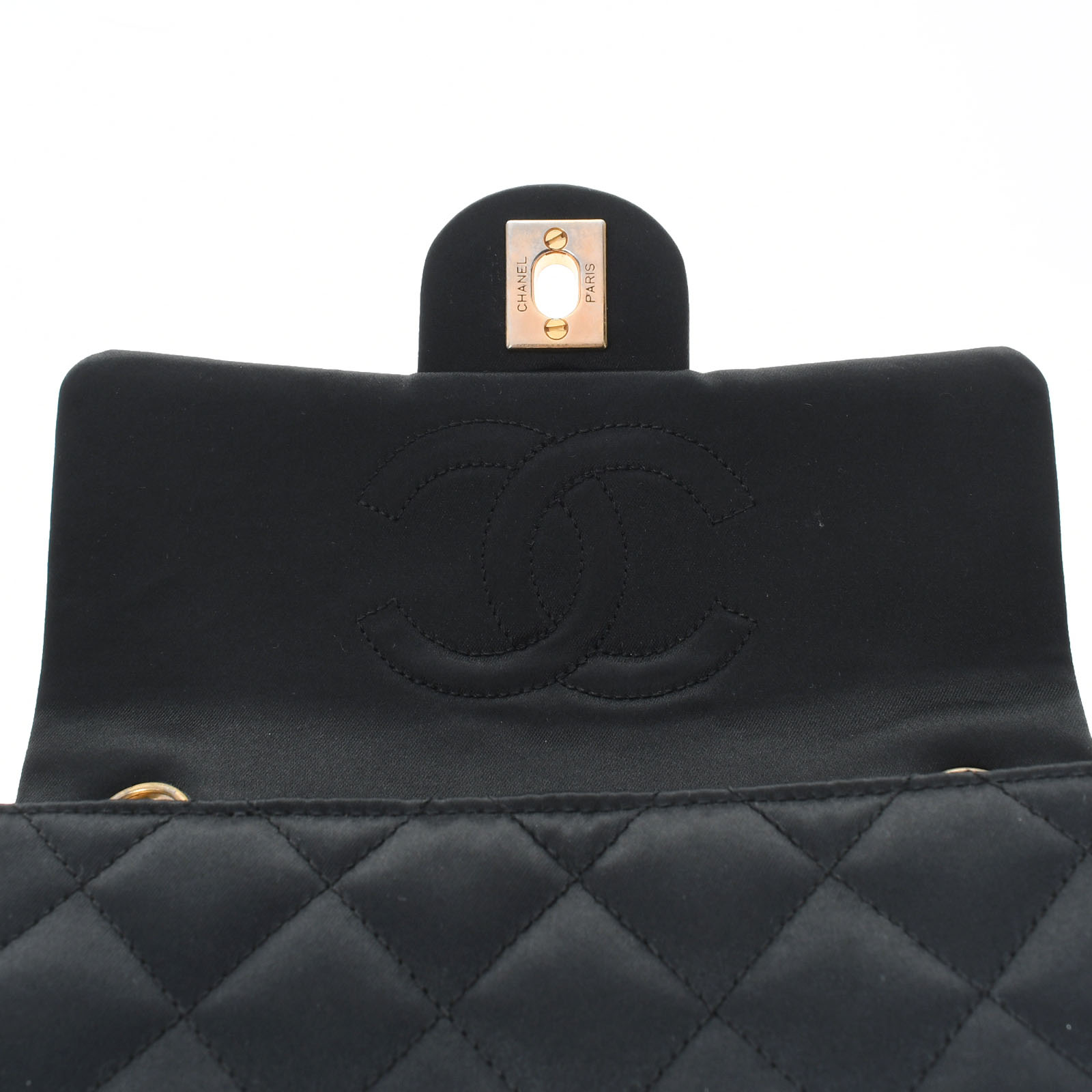 - マトラッセ ミニフラップバッグ17 ブラック/ゴールド金具 サテン