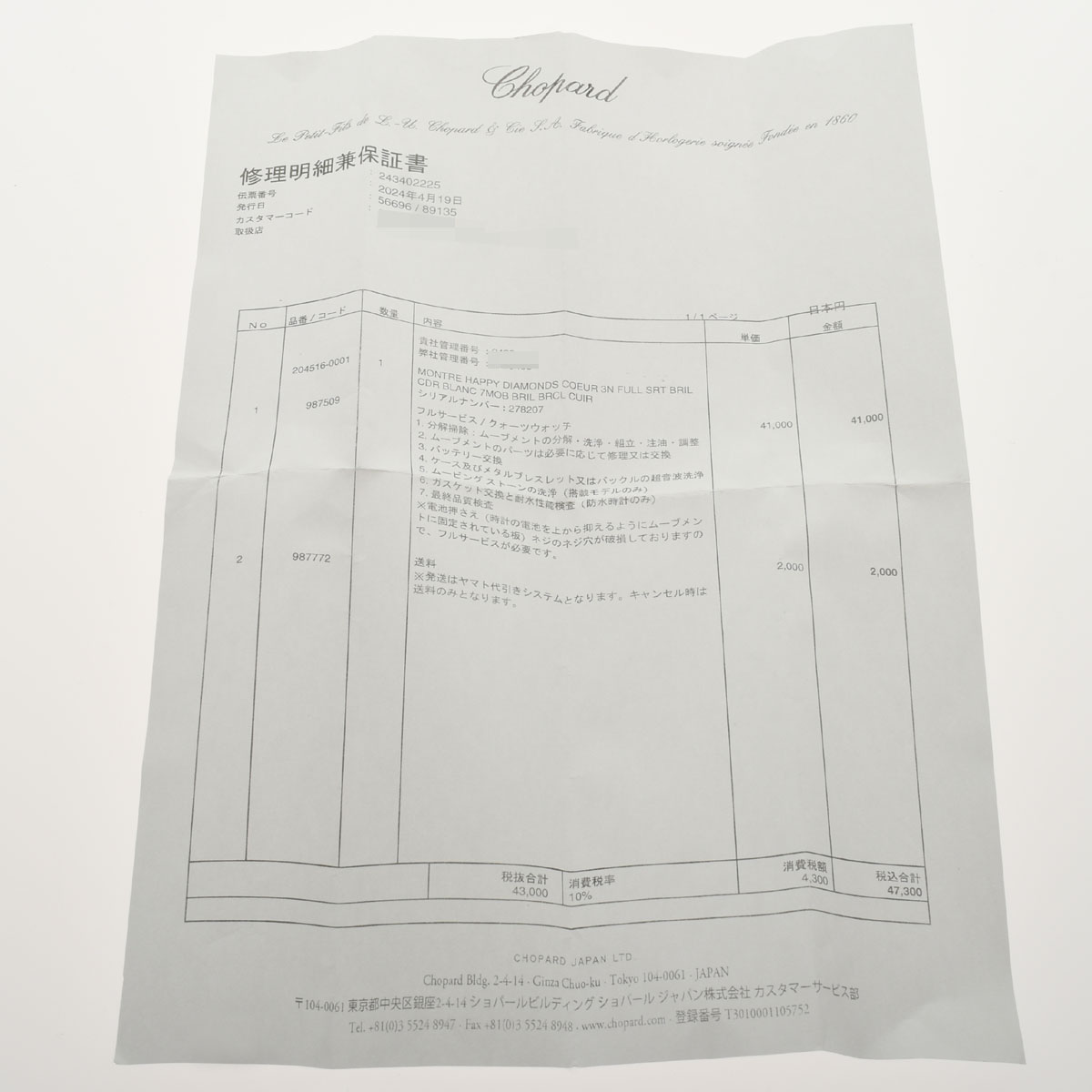 期間内であっても保証規定外の場合は有償修理となりますのであらかじめご了承ください。詳しくは時計の保証についてをご確認ください。