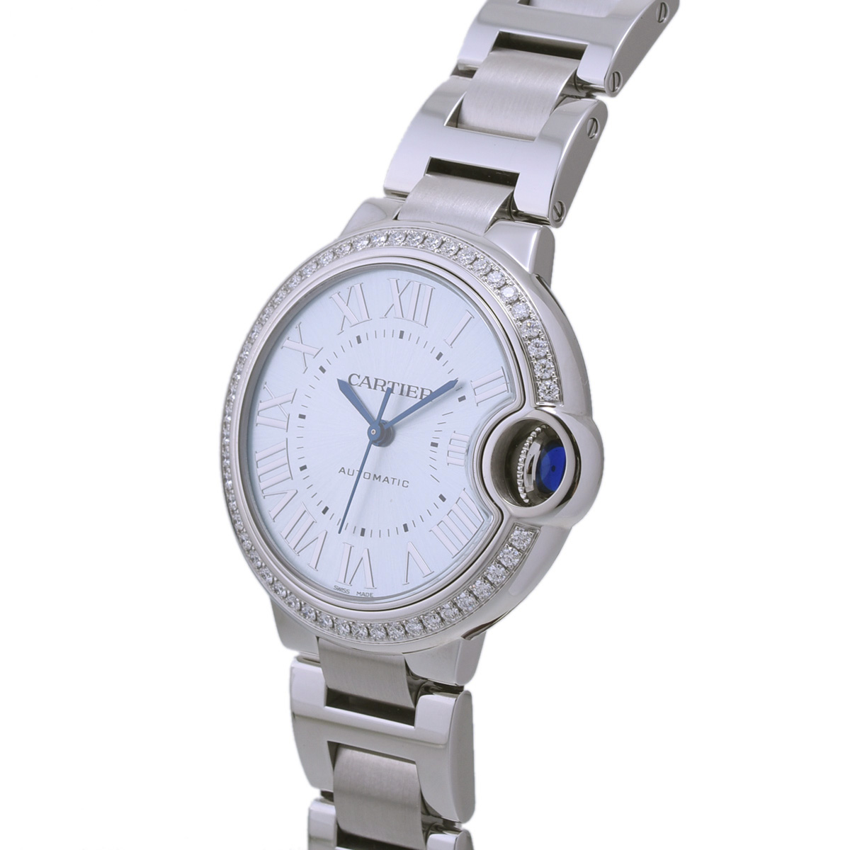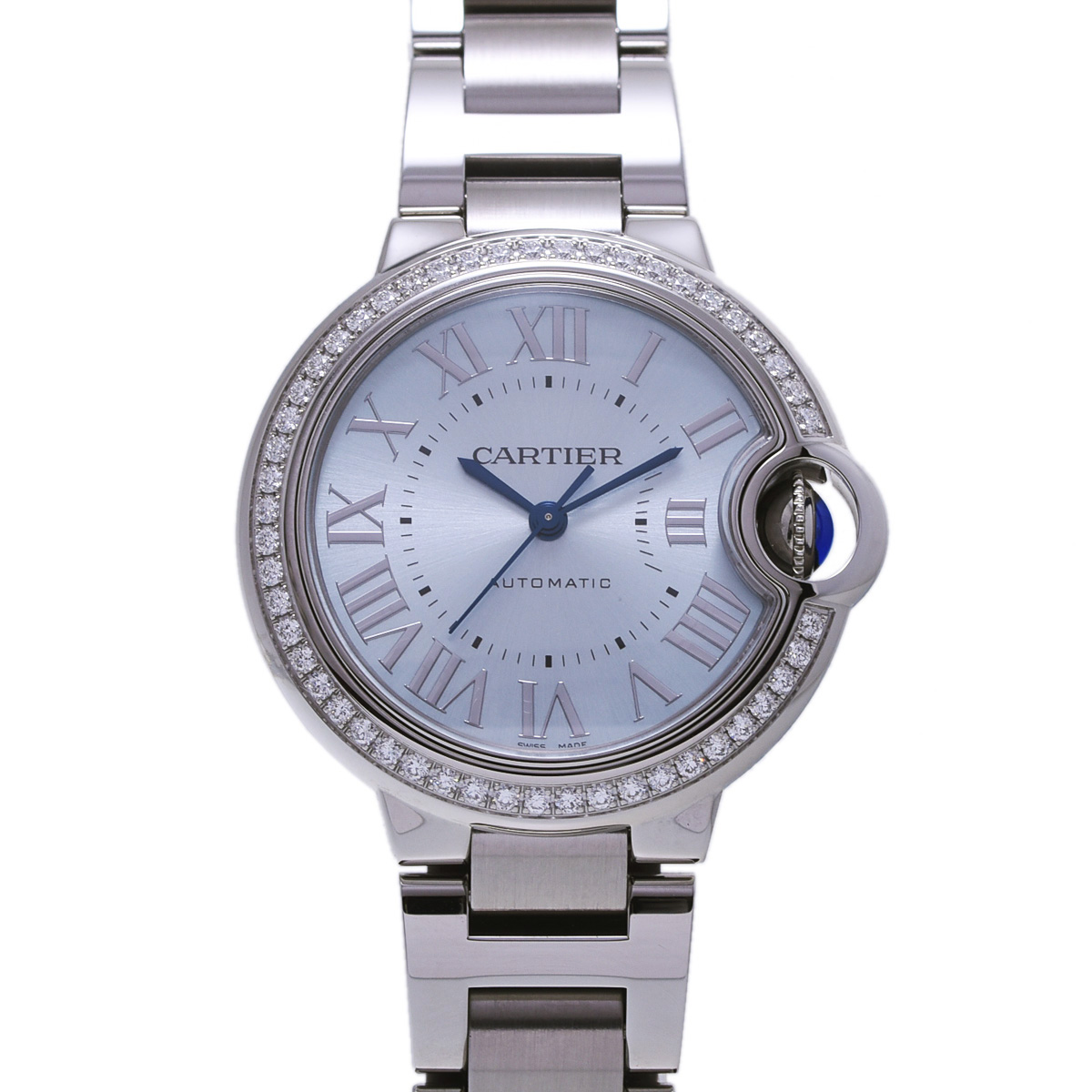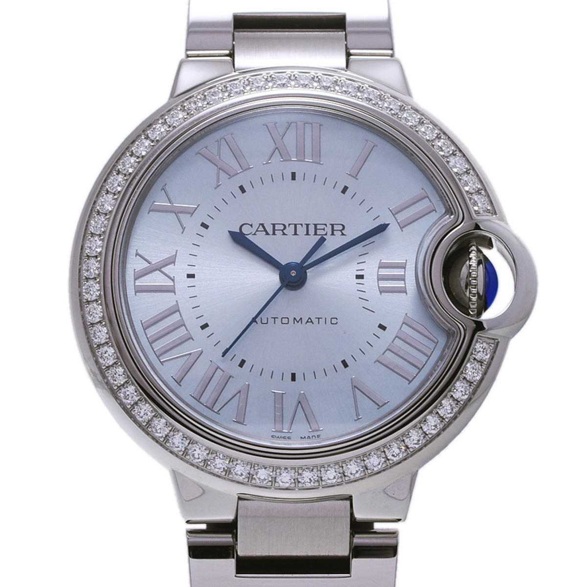 カルティエ バロンブルー 33mm ベゼルダイヤ W4BB0028 ブルー ボーイズ 時計 【wristwatch】