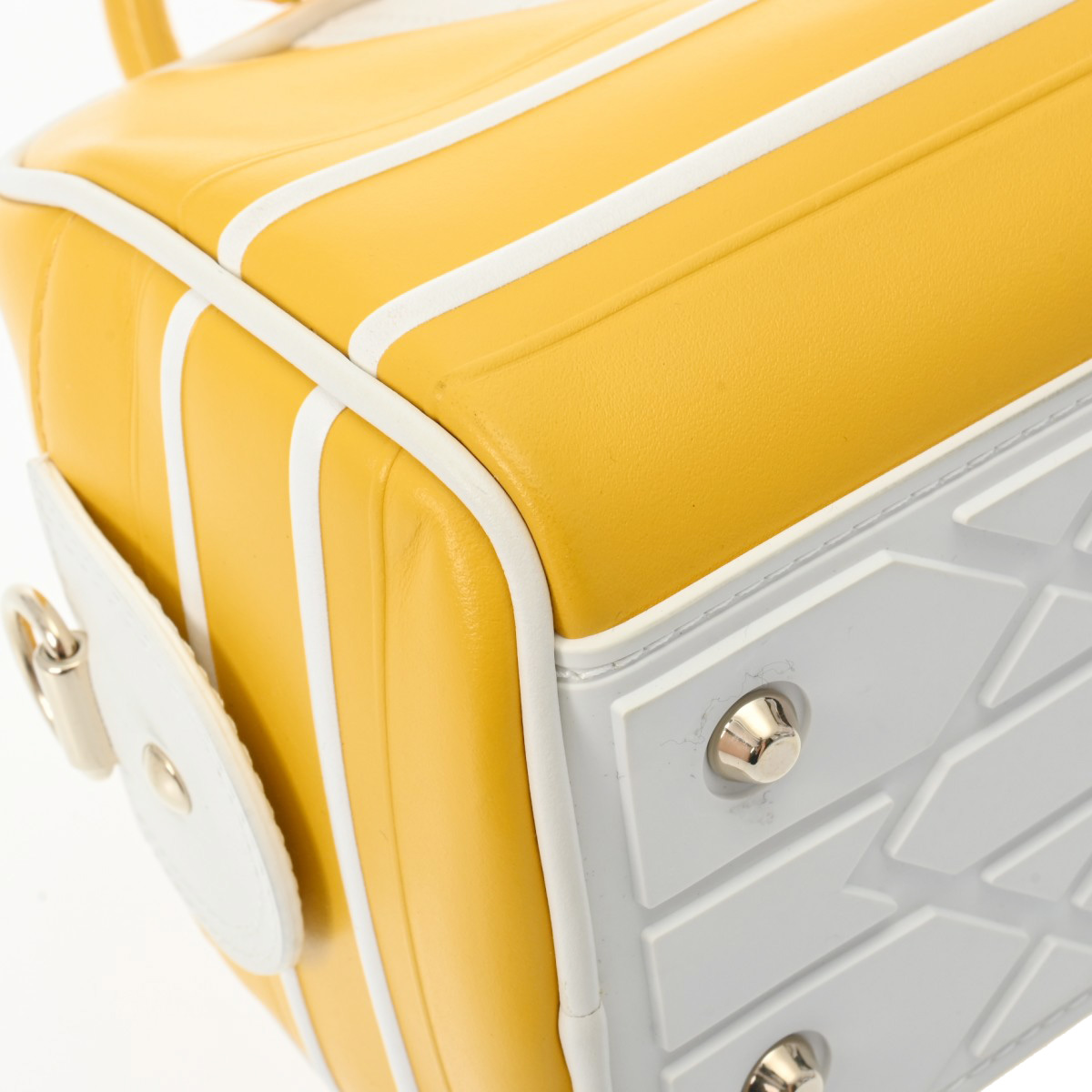 - 少しつぶれ、若干スレ、持ち手も含め若干汚れ、金具部分に若干スリキズがございます。