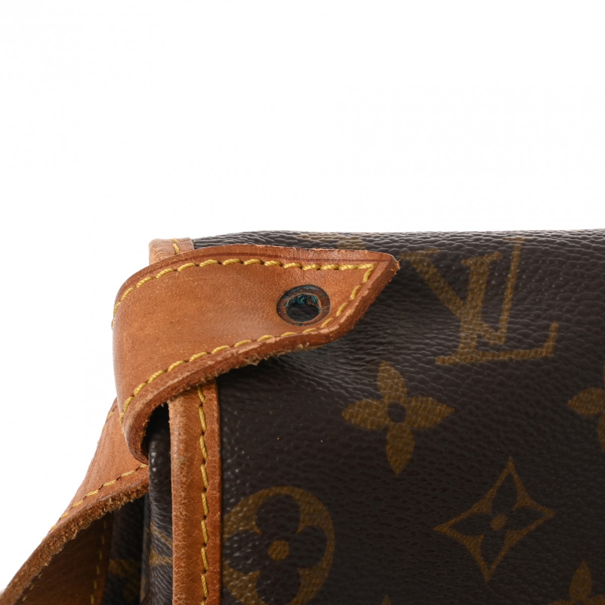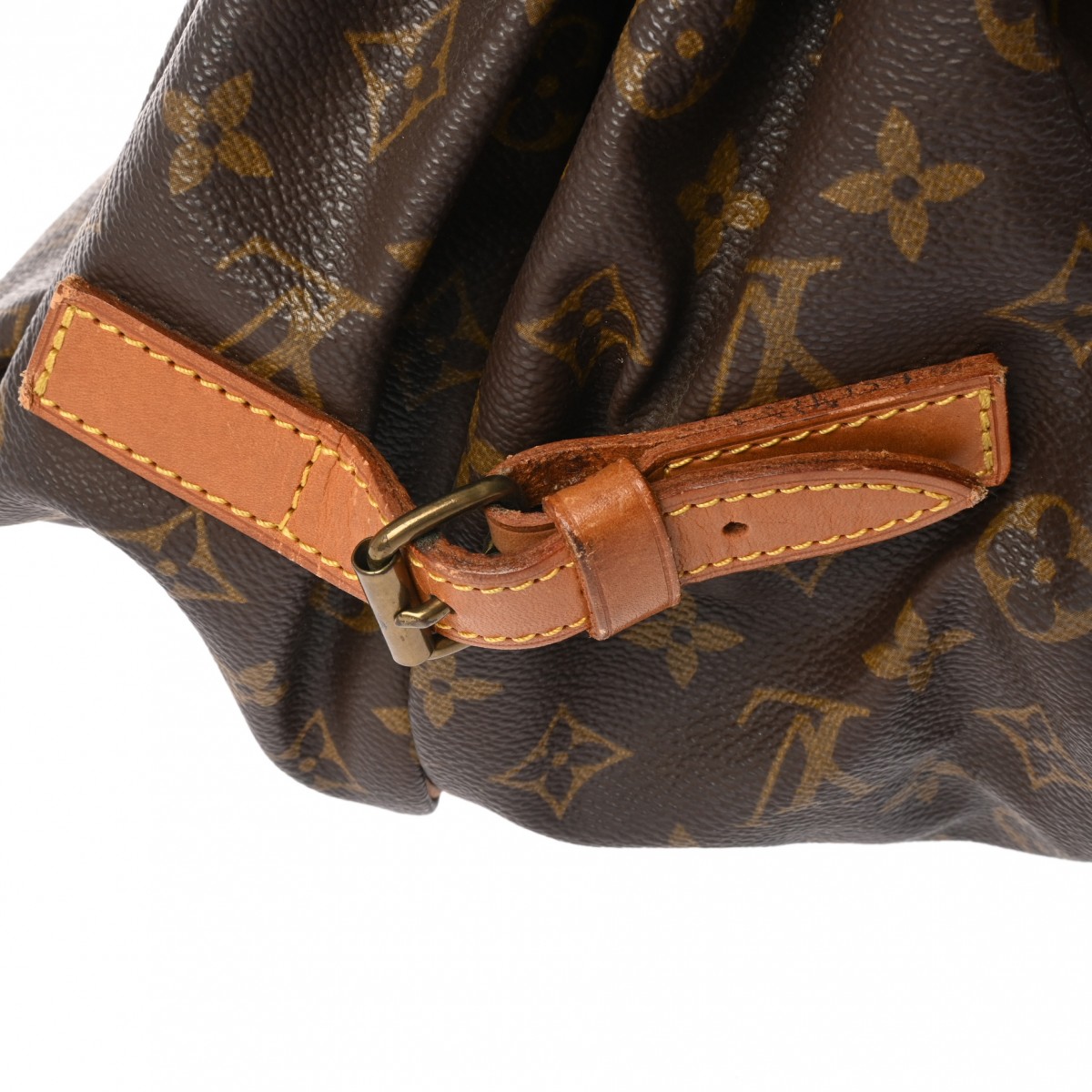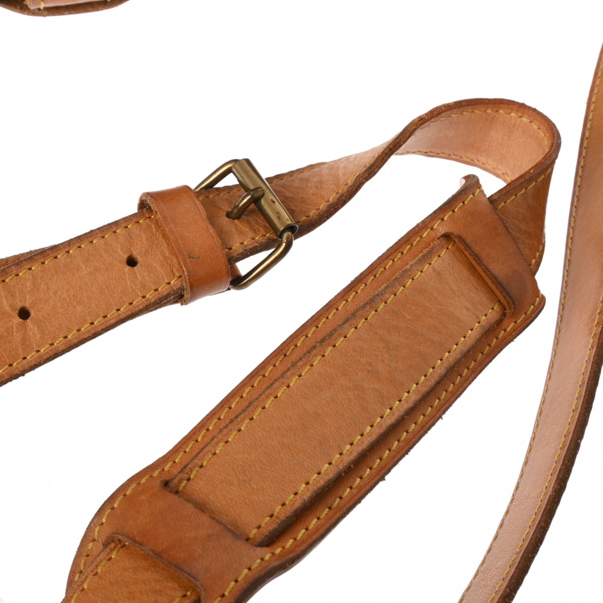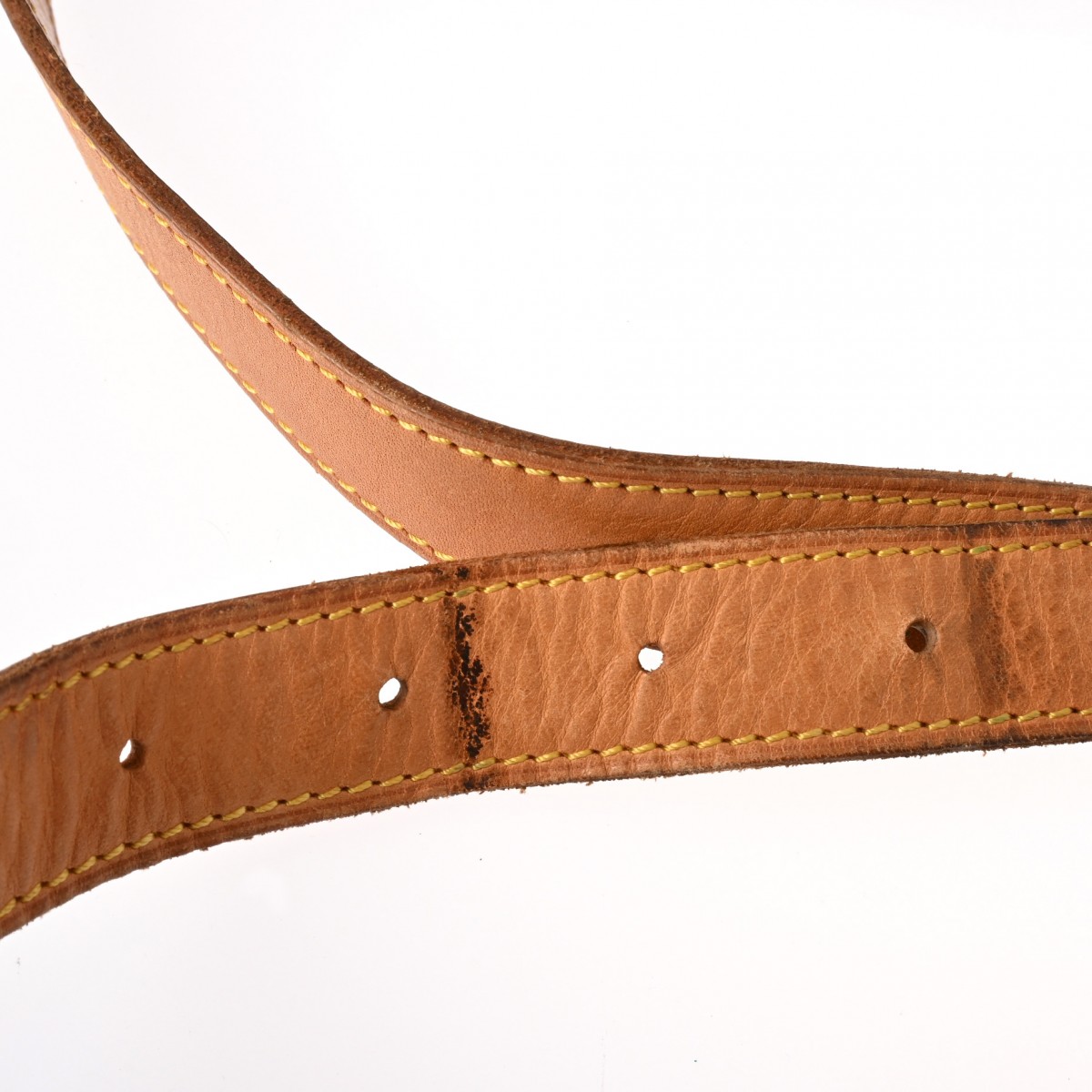 - つぶれ、薄汚れ、コバスレ、少々べたつき、ショルダーにクセ、シワ、ベルトにひび割れ、ヌメ革にヤケやシミ、ひび割れ、シワ、金具に変色や緑青など使用感、ビスが1か所取れております。