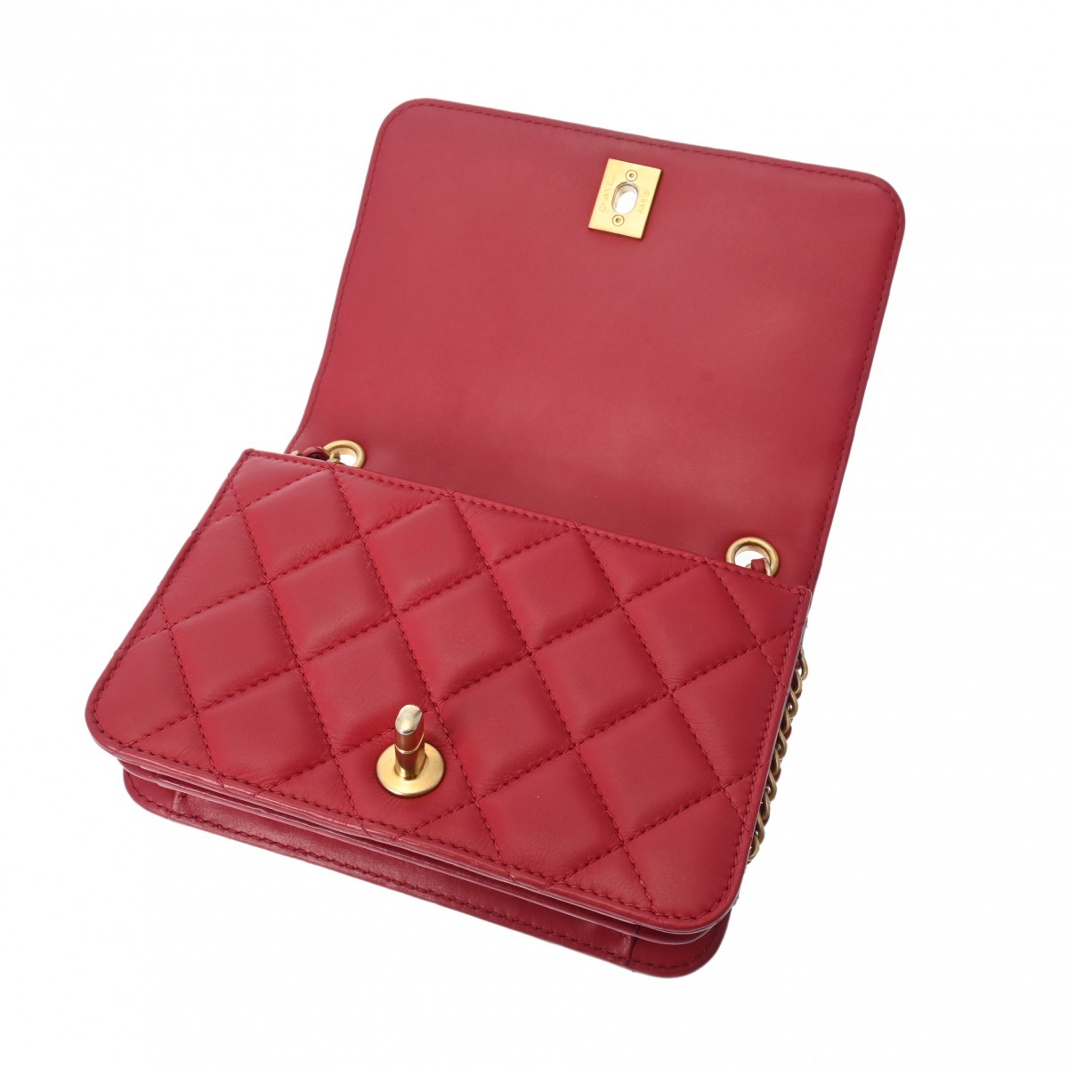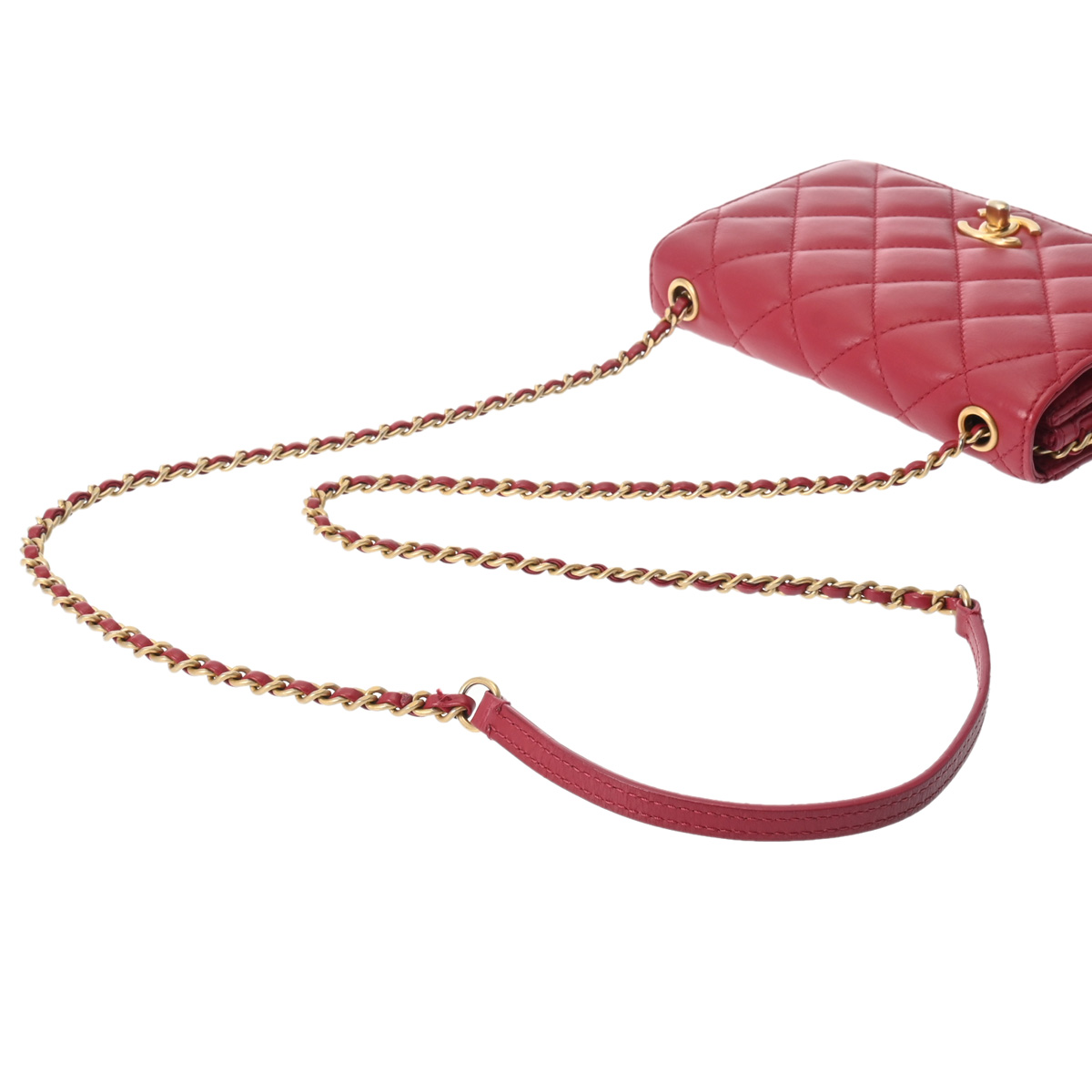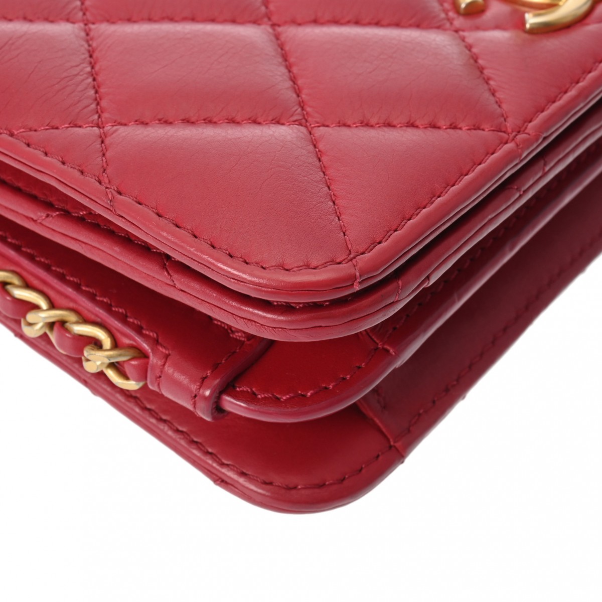 シャネル マトラッセ チェーンショルダー 18cm レッド系 ラムスキン ユニセックス バッグ 【bag】