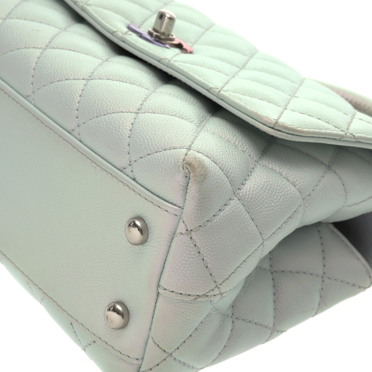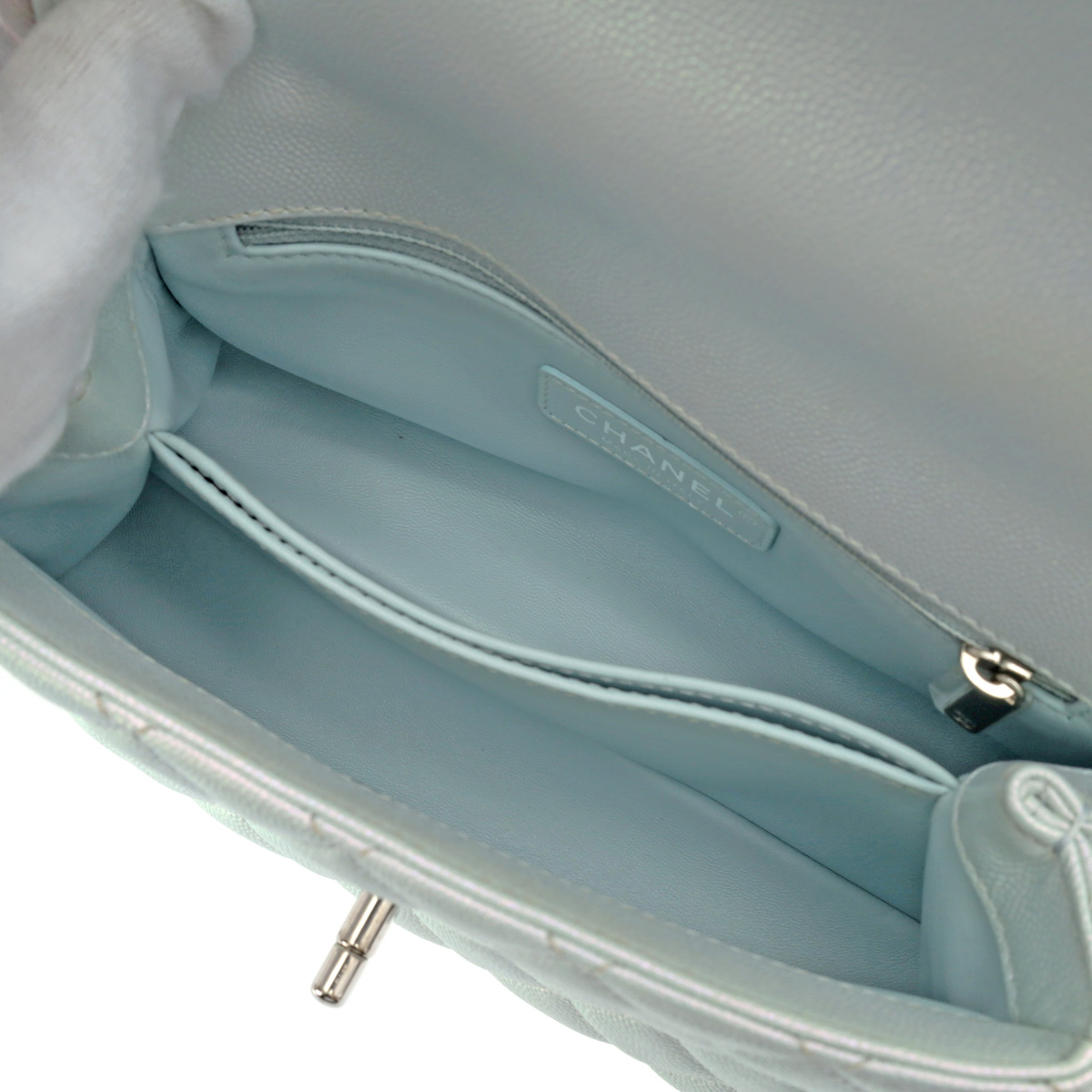 シャネル トップハンドル XS メタリックブルー A92990 キャビアスキン レディース バッグ 【bag】