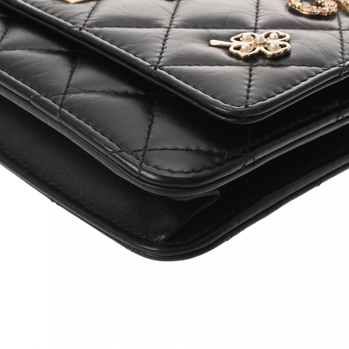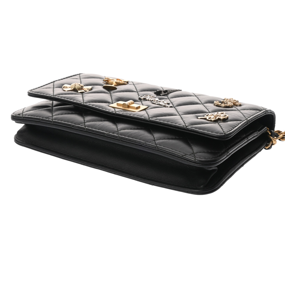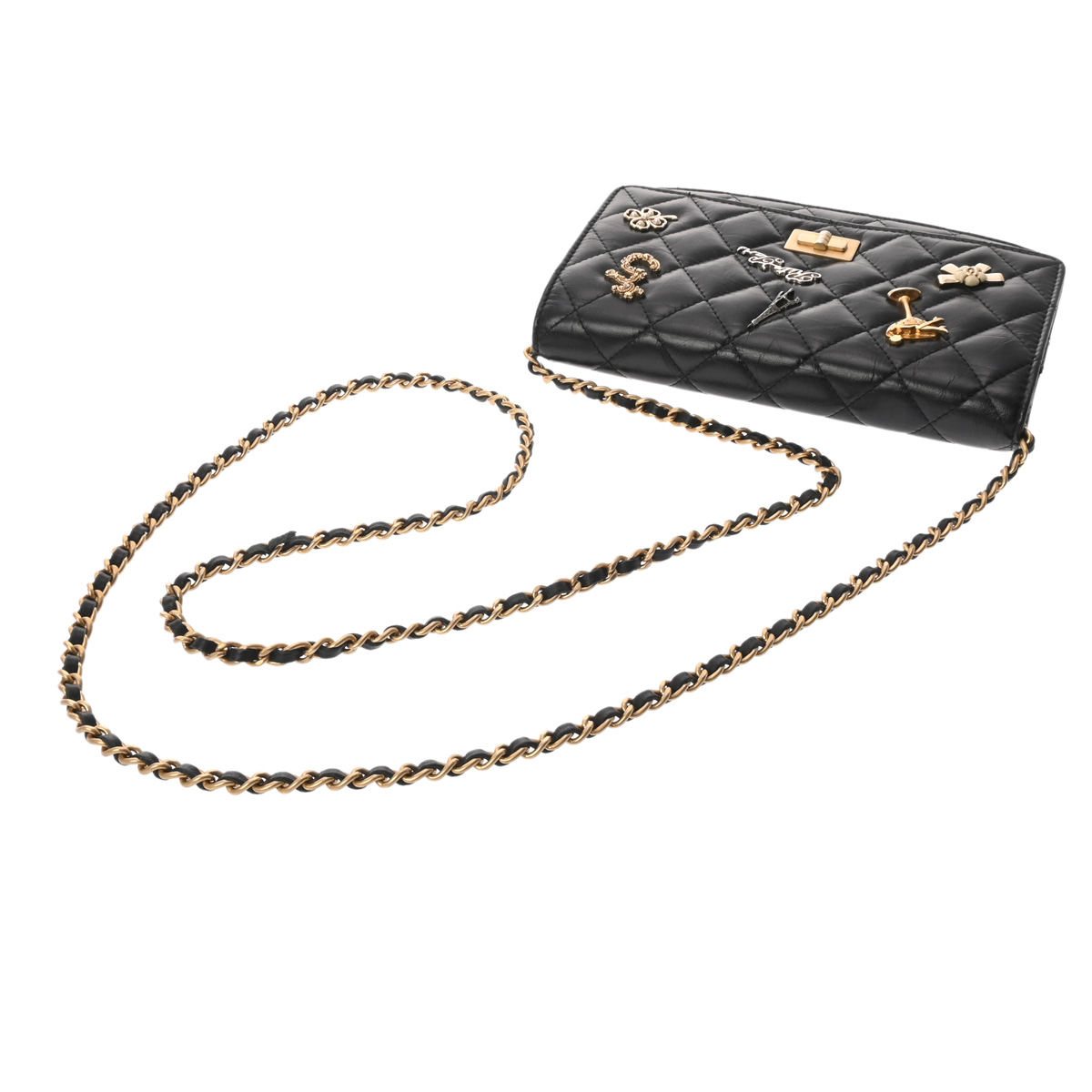 シャネル 2.55 マトラッセ エンブロイダリー チェーンウォレット ブラック ラムスキン/スタッズ レディース バッグ 【bag】