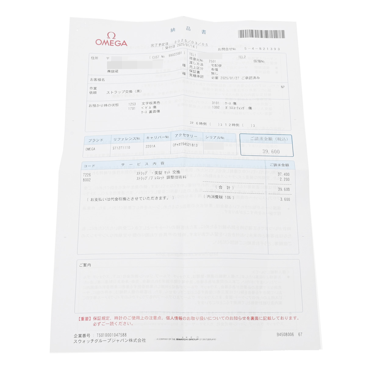 期間内であっても保証規定外の場合は有償修理となりますのであらかじめご了承ください。詳しくは時計の保証についてをご確認ください。