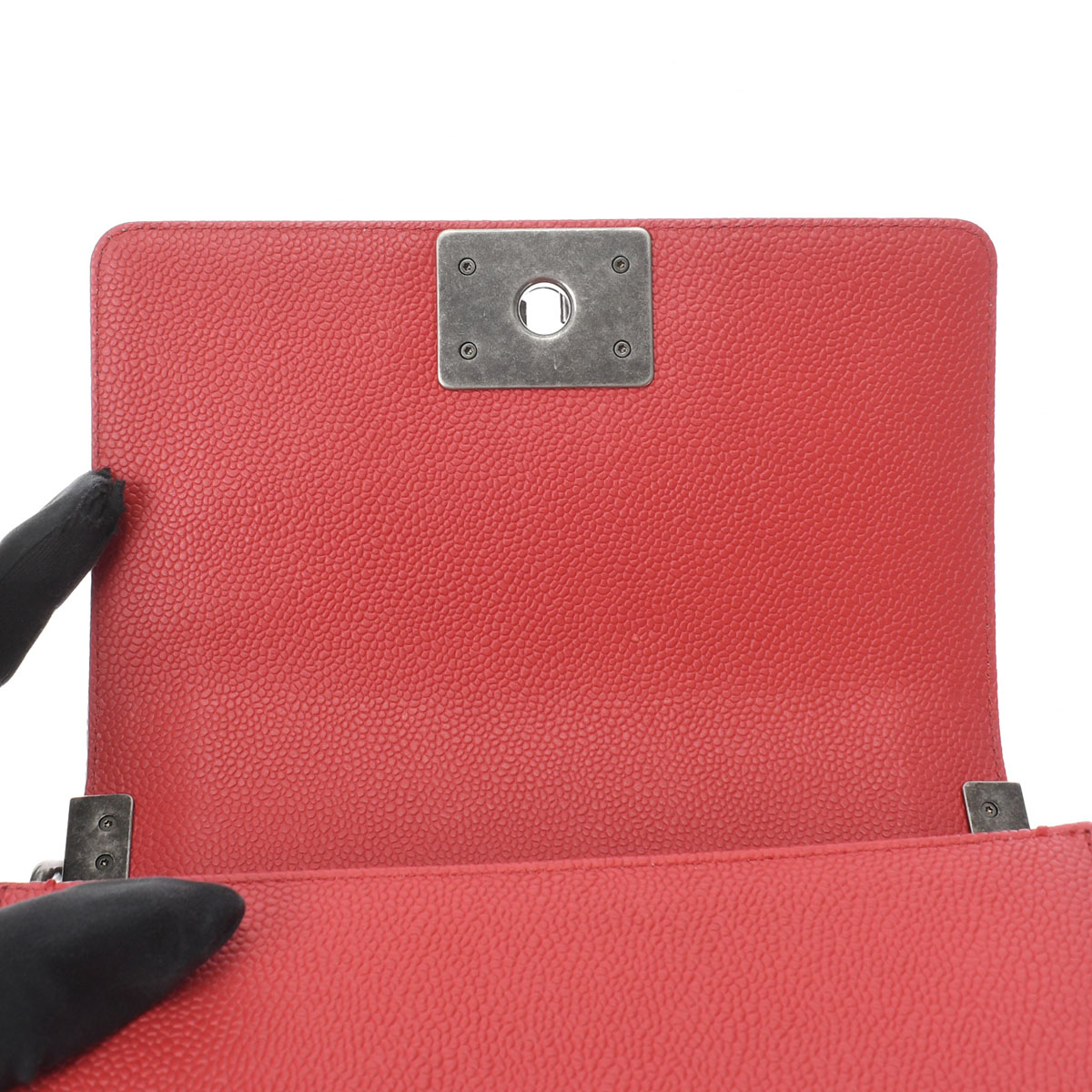 - フラップ裏に薄い押し跡、金具に若干スレがございます。