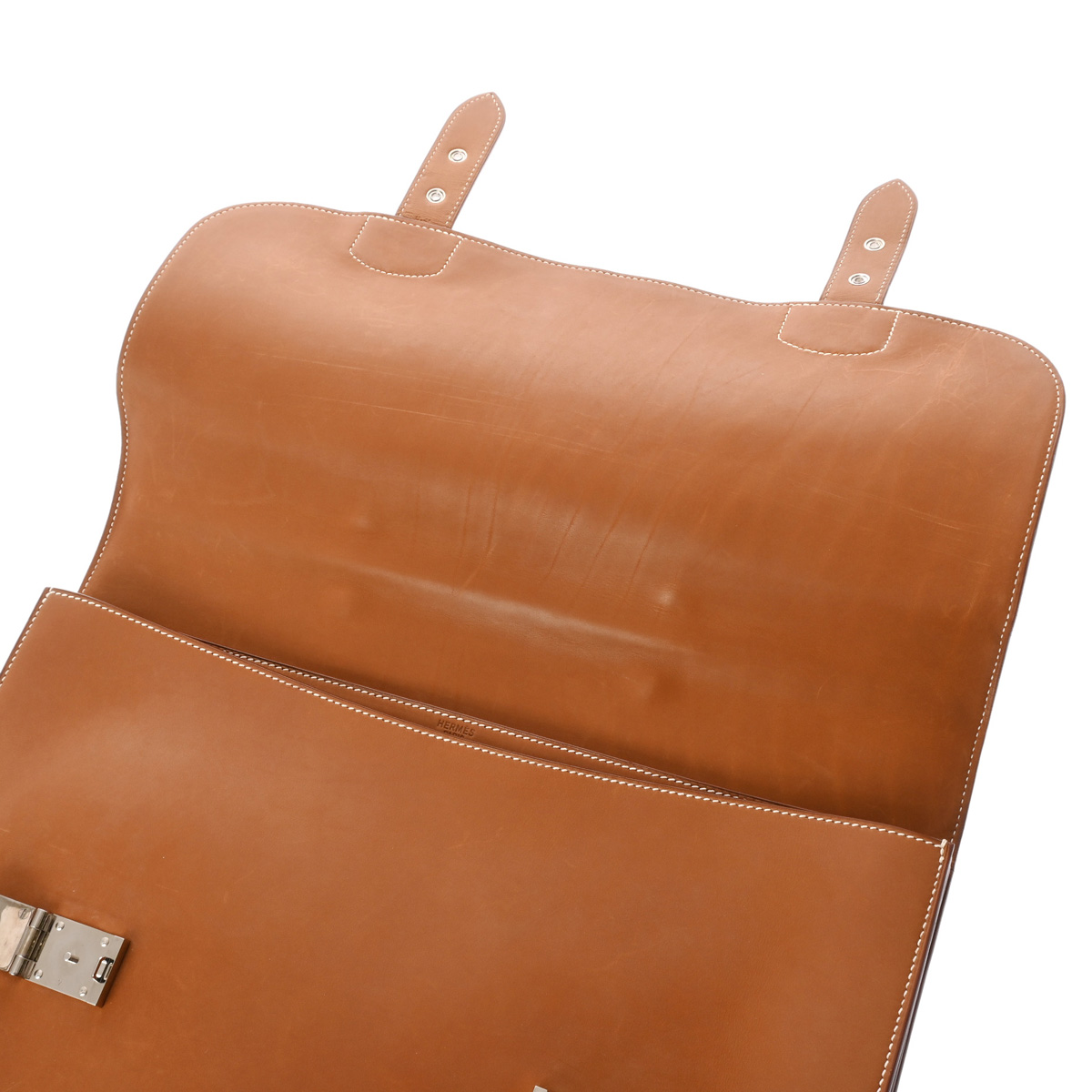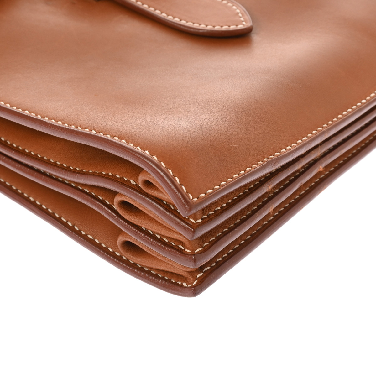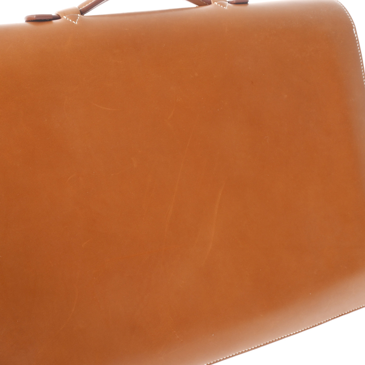 - スレ、薄汚れ、若干押し跡、薄めのシミ汚れが少々あり、持ち手に汚れなど少々使用感、金具部分にスリキズなど少々使用感がございます。
