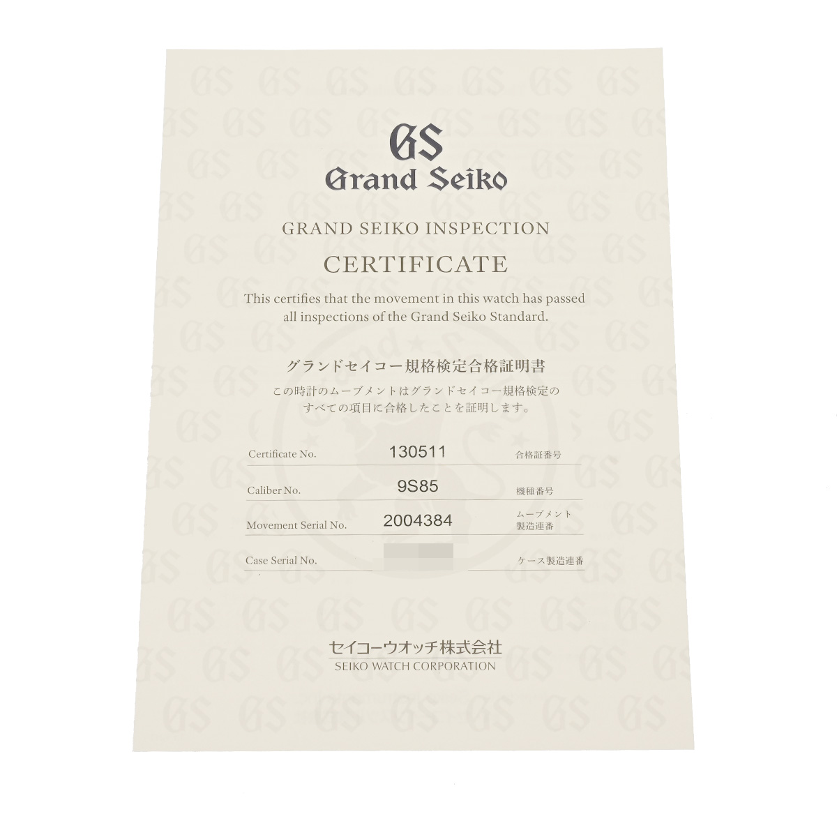 - 自動巻き / Cal.9S85