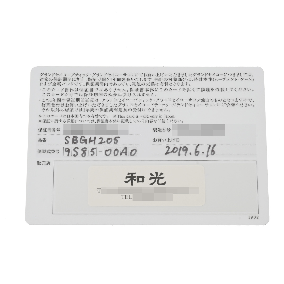 - メーカー保証書( 2019年6月国内購入) / メーカー箱/冊子/GS規格書 / サロンカード(2019年6月の記載有)