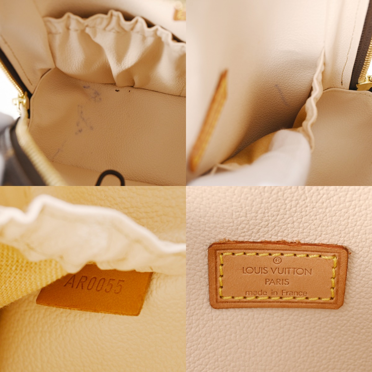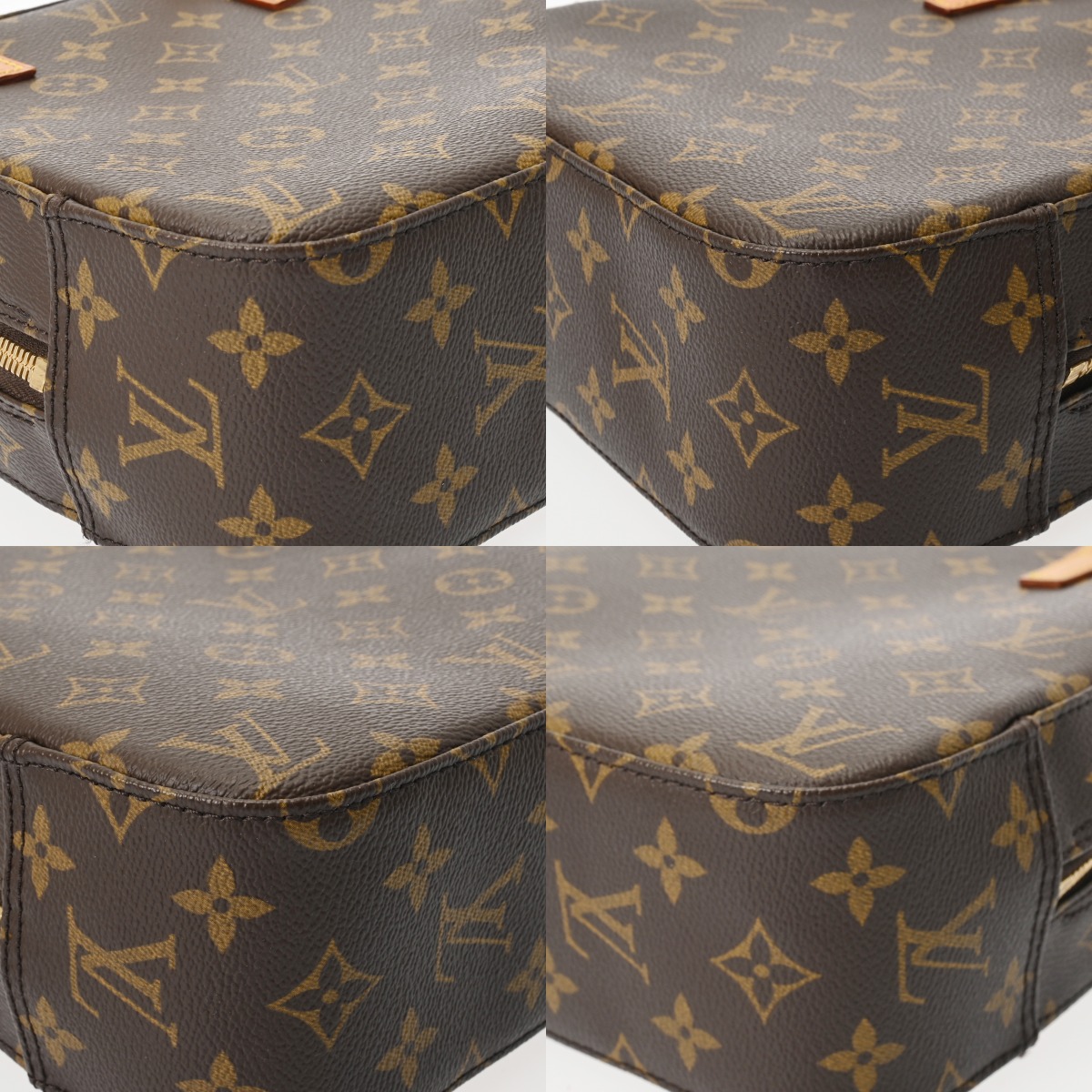 - ややつぶれやヨレ、薄汚れ、テカリ、バッグ口にヨレ、持ち手やショルダーにクセやヨレ、ヒビ、コバやステッチに毛羽立ち、ヌメ革にヤケやシミ、シワ、金具にくすみやスレなど使用感がございます。
