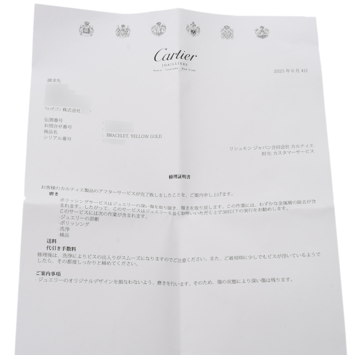 - 内箱(ダメージ)/ドライバー / 修理明細書(2025年6月磨き)