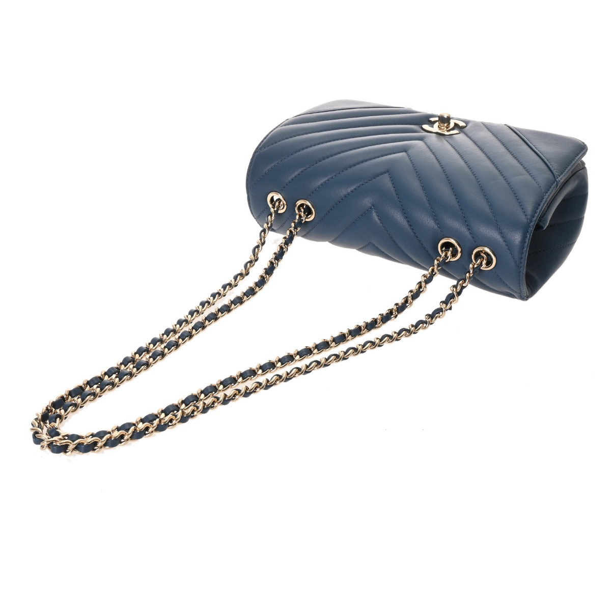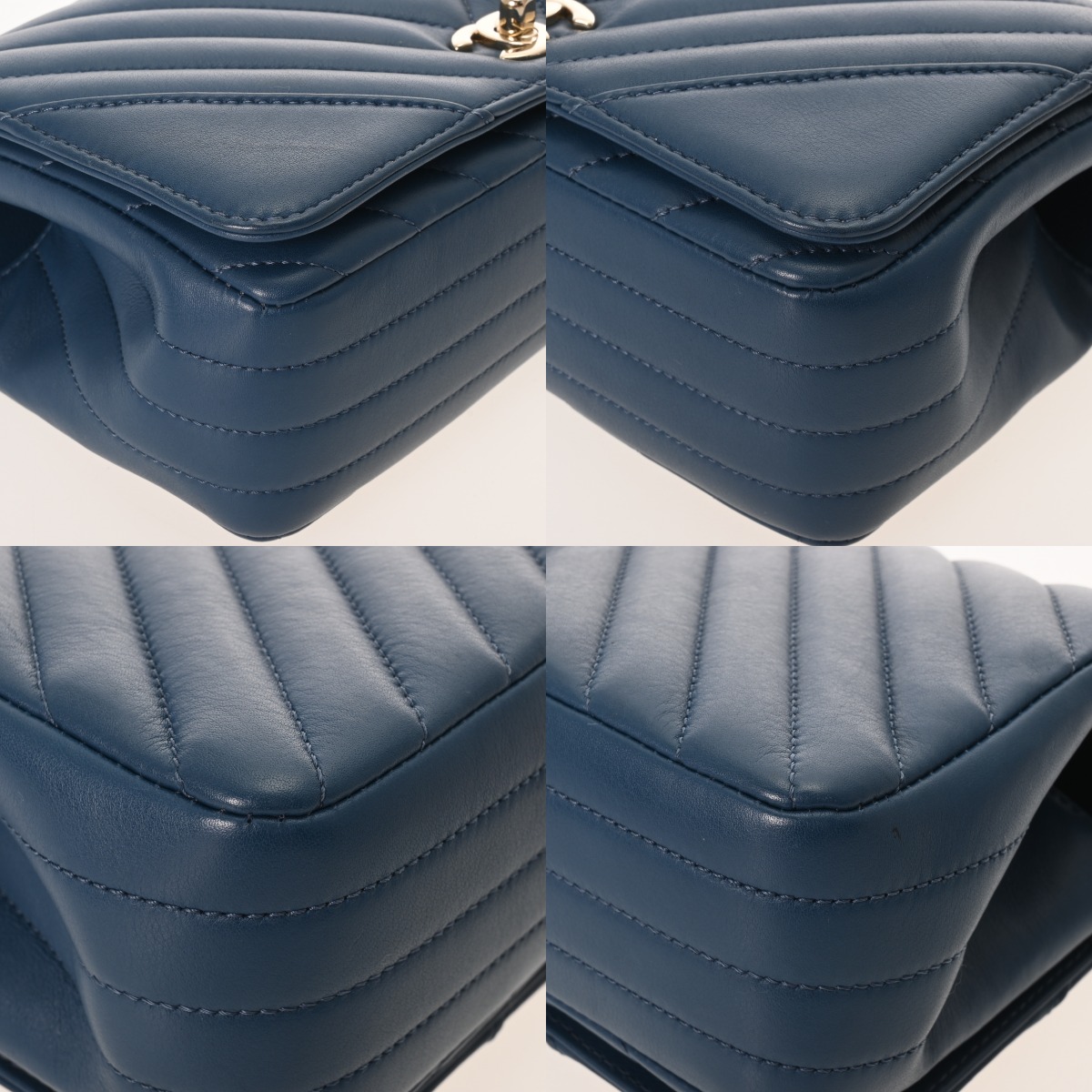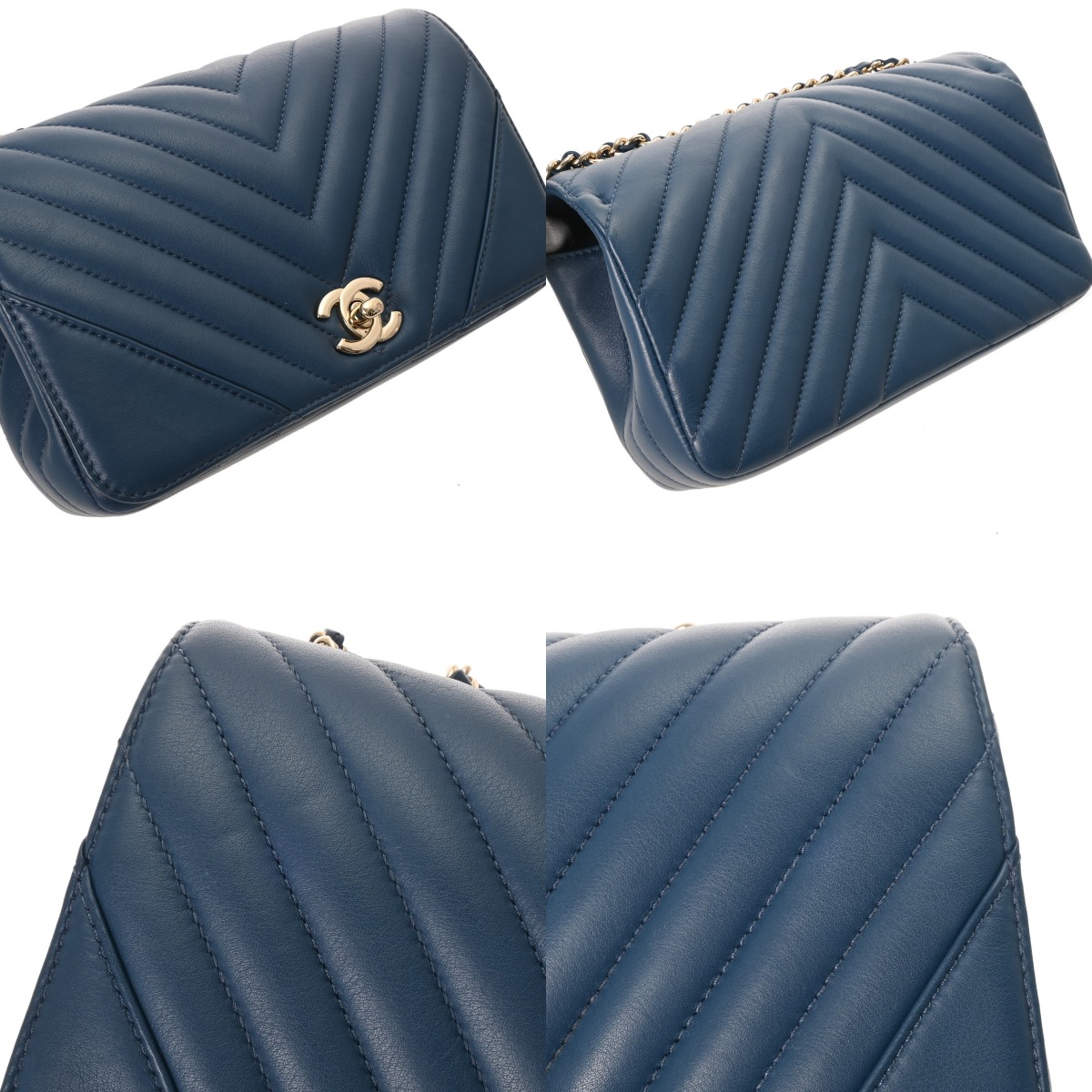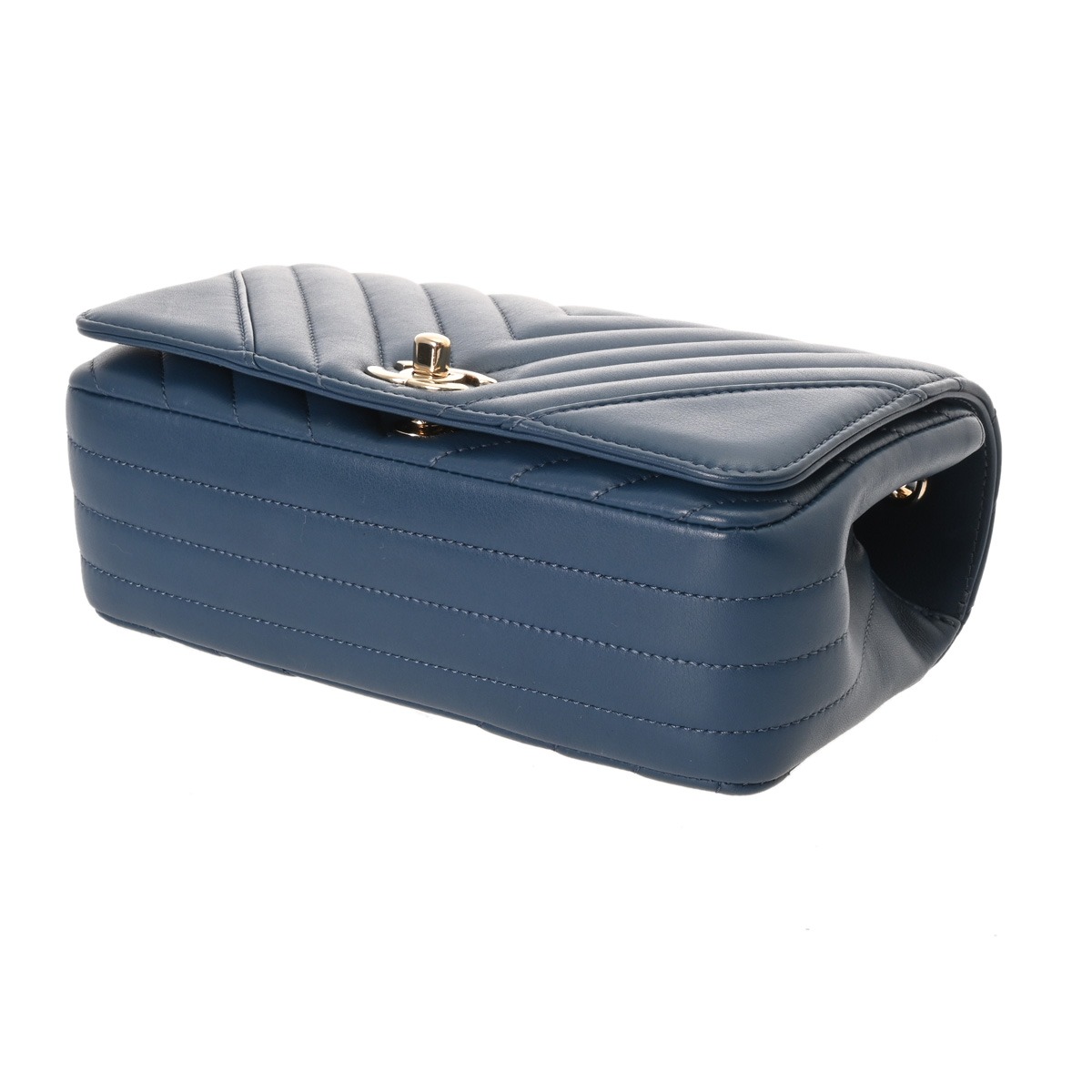 シャネル Vステッチ チェーンショルダー 20cm ブルー ラムスキン レディース バッグ 【bag】