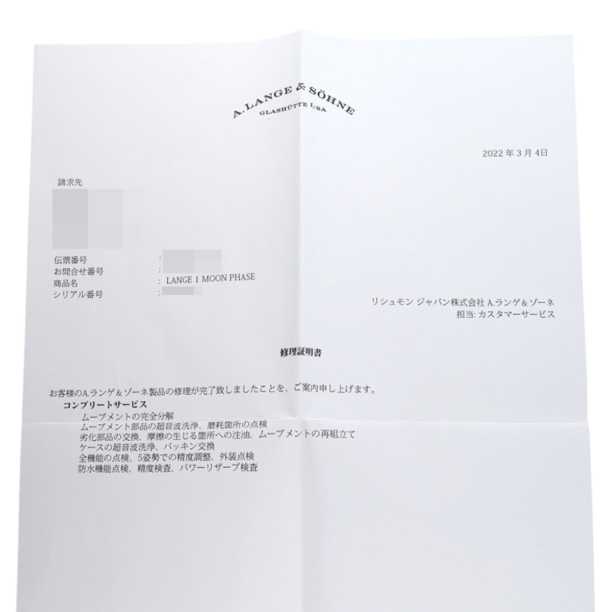 - 替えベルト( 2020年9月海外購入) / メーカー箱/冊子 / 納品書/修理証明書(2022年3月コンプリートサービス)