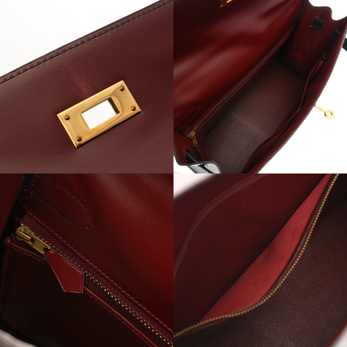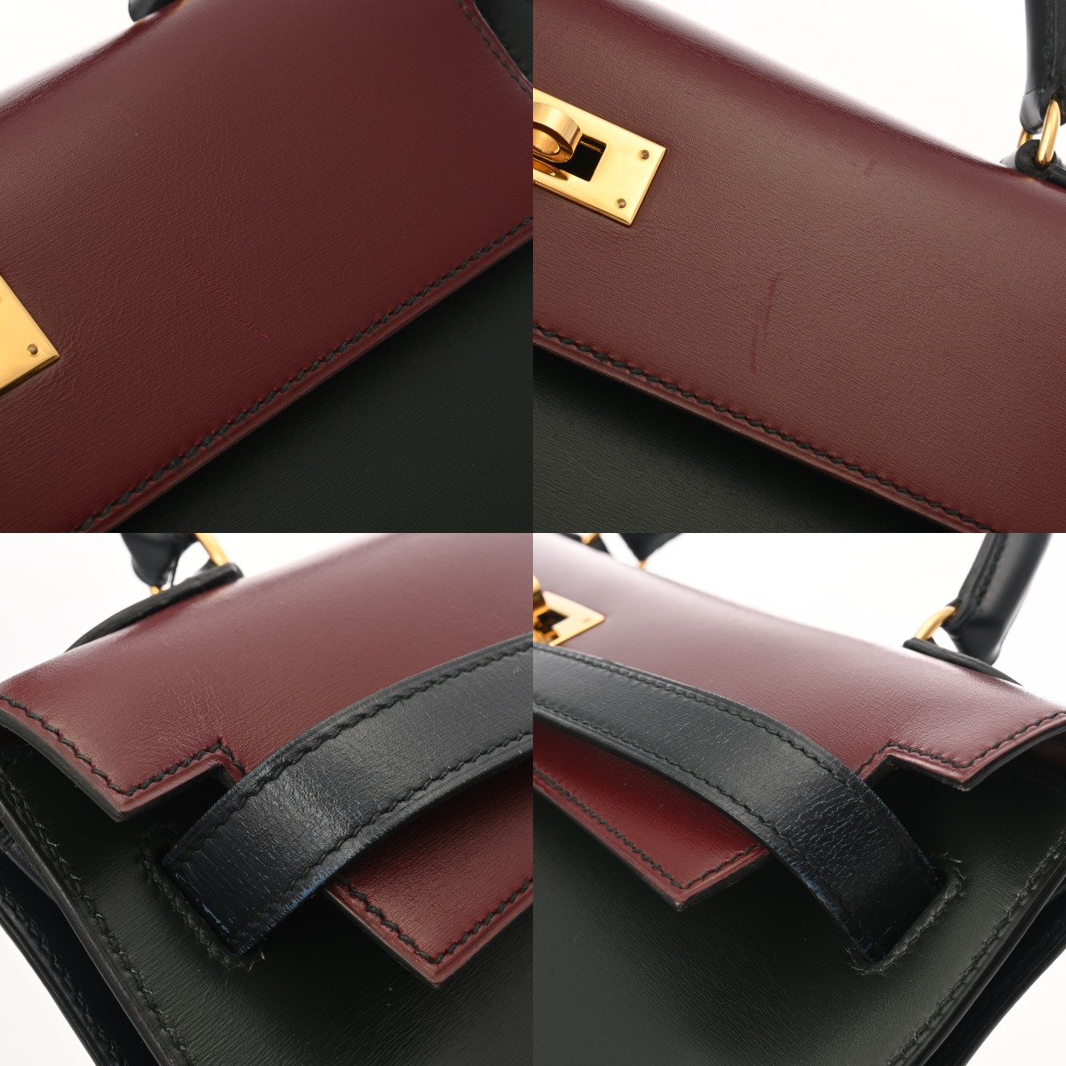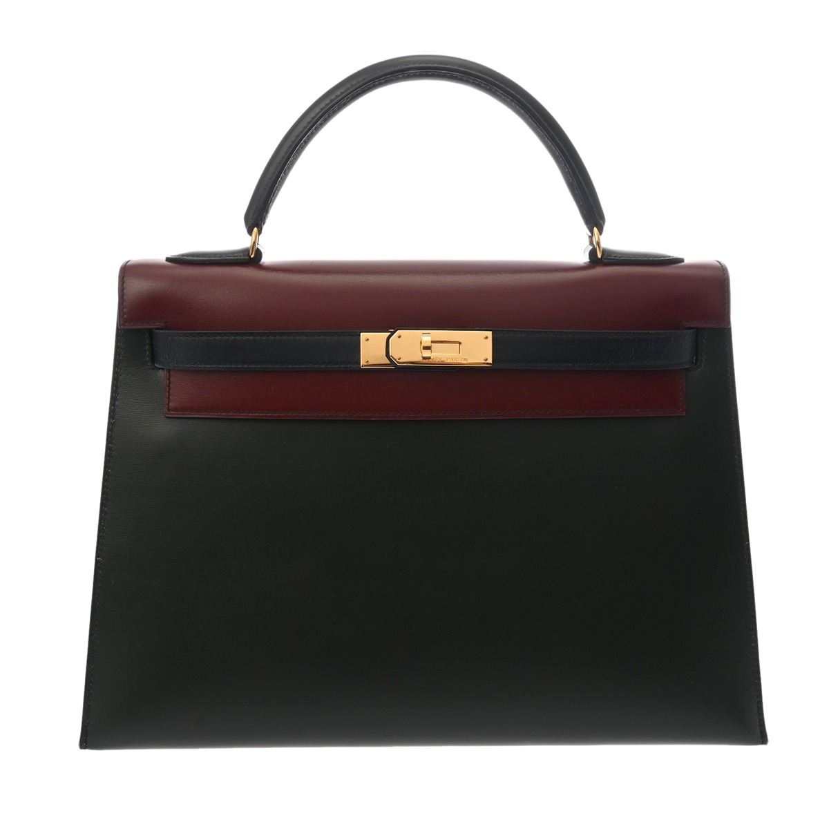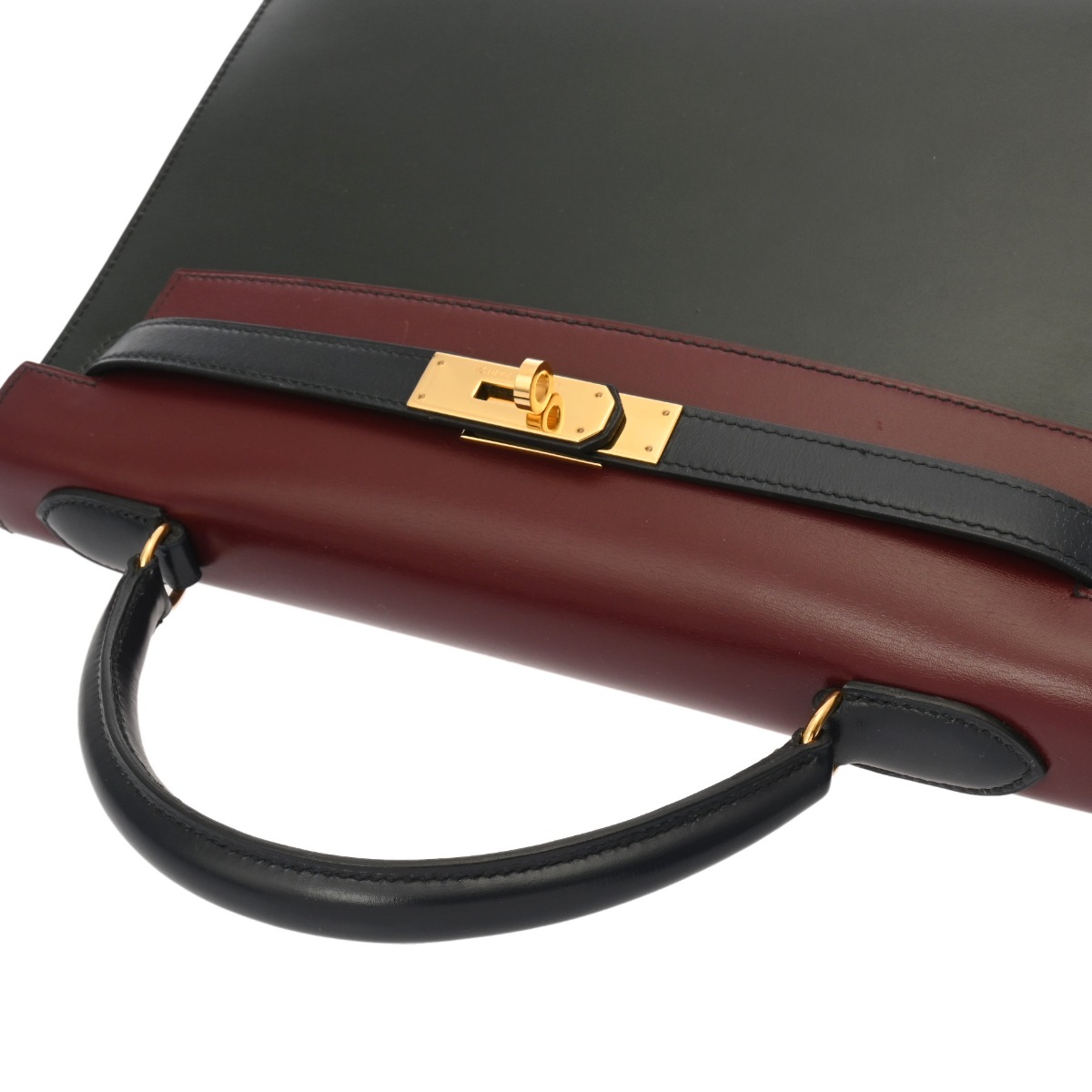 エルメス ケリー 32 外縫い トリコロール ルージュアッシュ/グリーン系/ネイビー系 ボックスカーフ レディース バッグ 【bag】