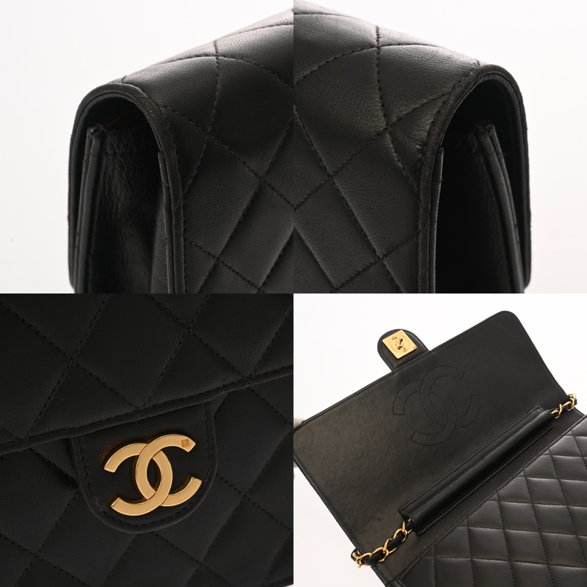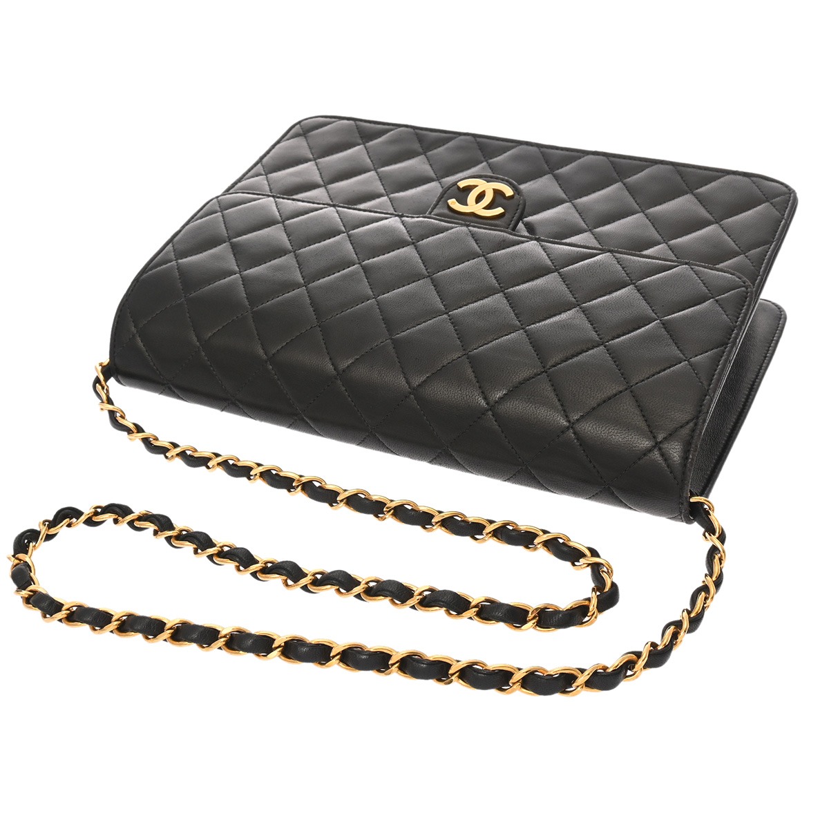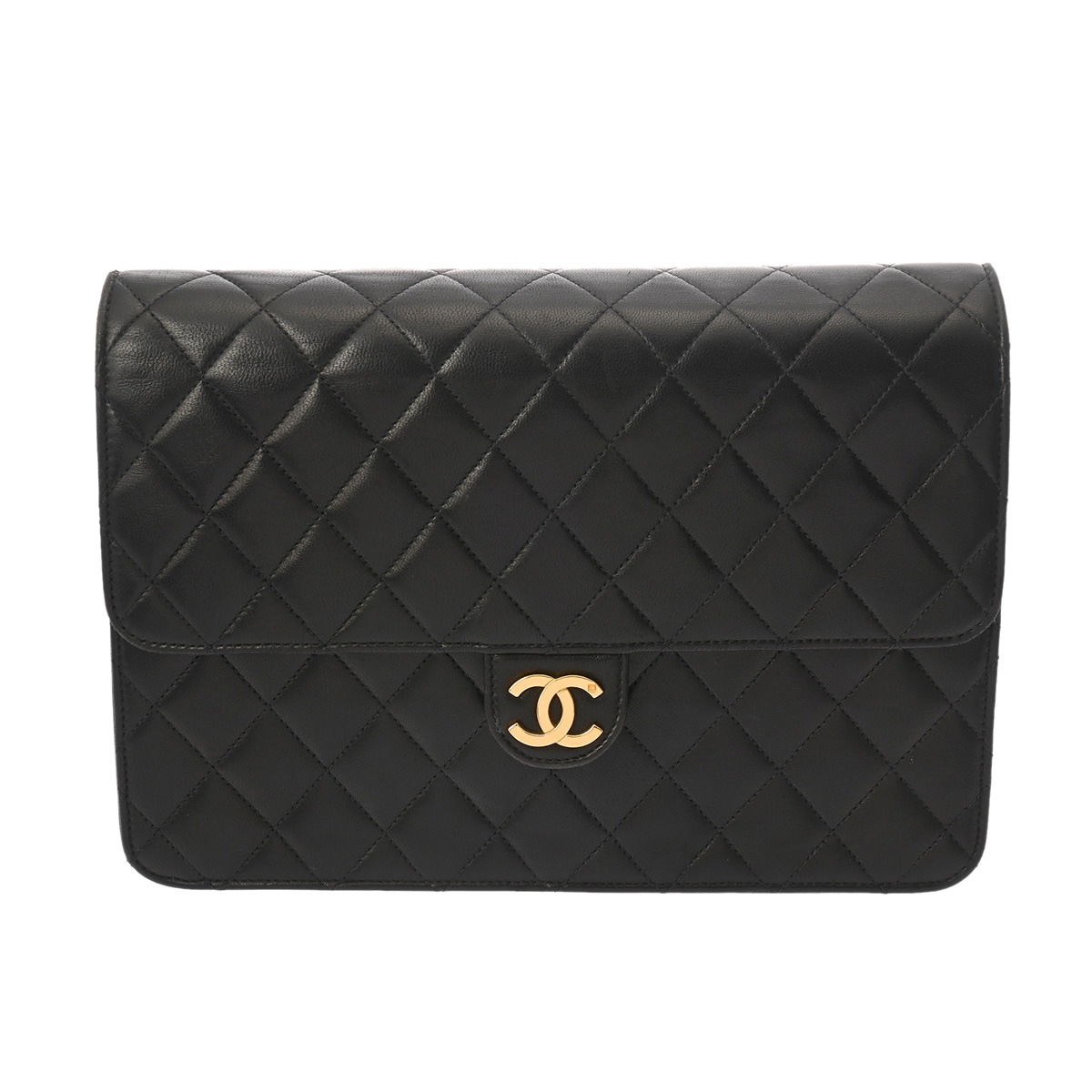 シャネル マトラッセ プッシュロック チェーンショルダー 25cm ブラック ラムスキン レディース バッグ 【bag】