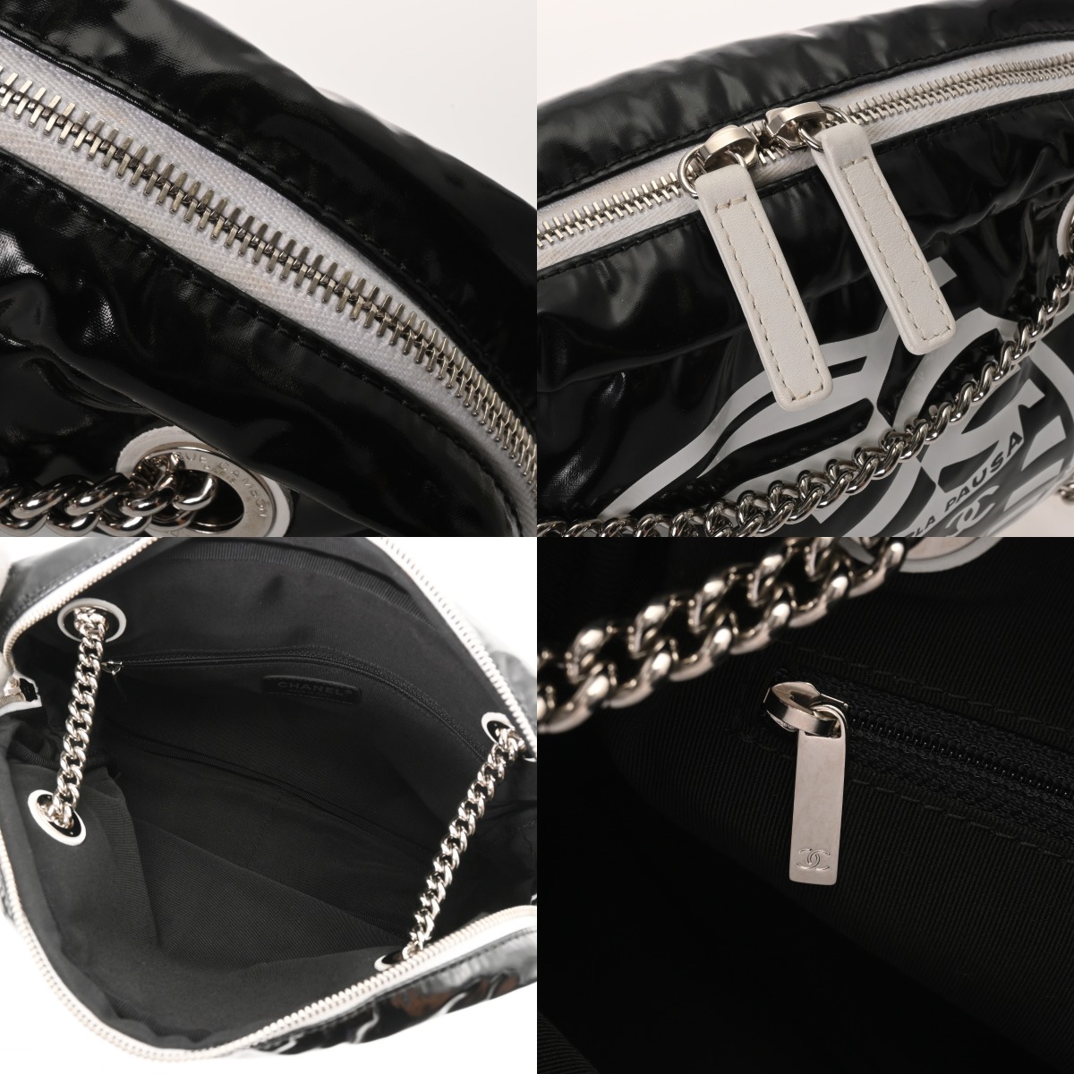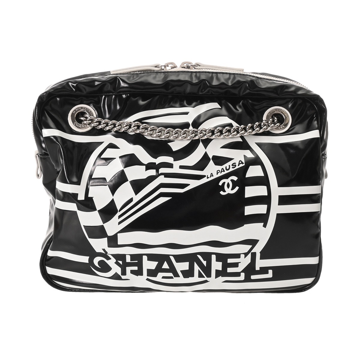 シャネル チェーンショルダー LA PAUSA 19年 クルーズコレクション ブラック/ホワイト コーティングキャンバス ユニセックス バッグ 【bag】