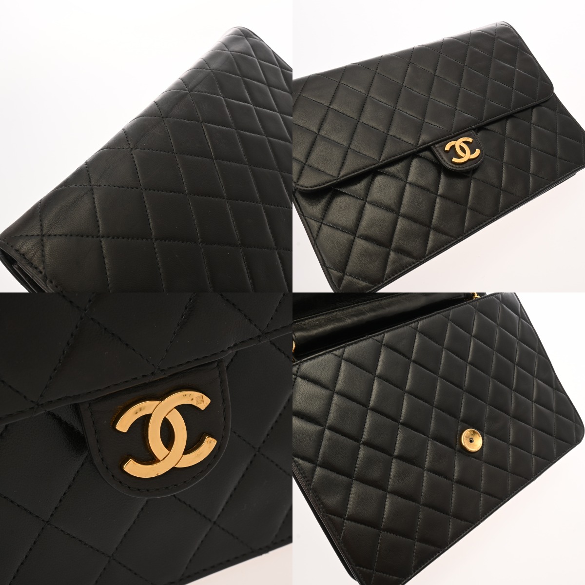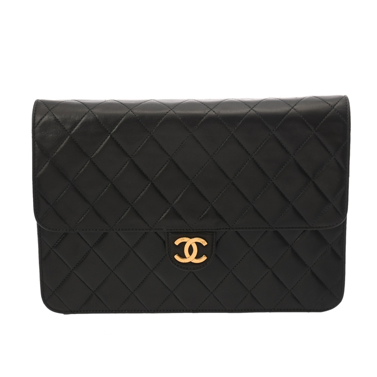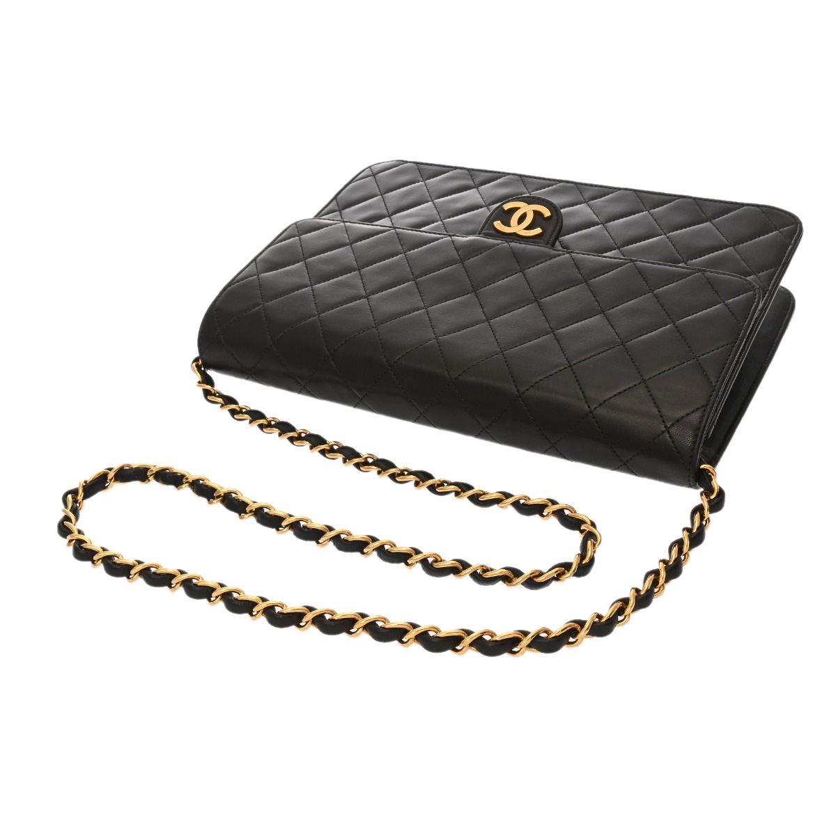 シャネル マトラッセ プッシュロック チェーンショルダー 25cm ブラック ラムスキン レディース バッグ 【bag】