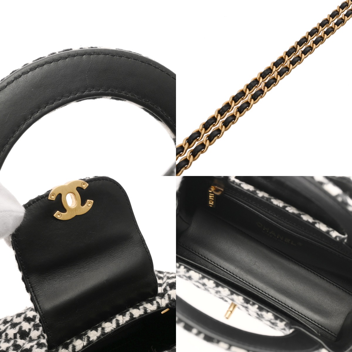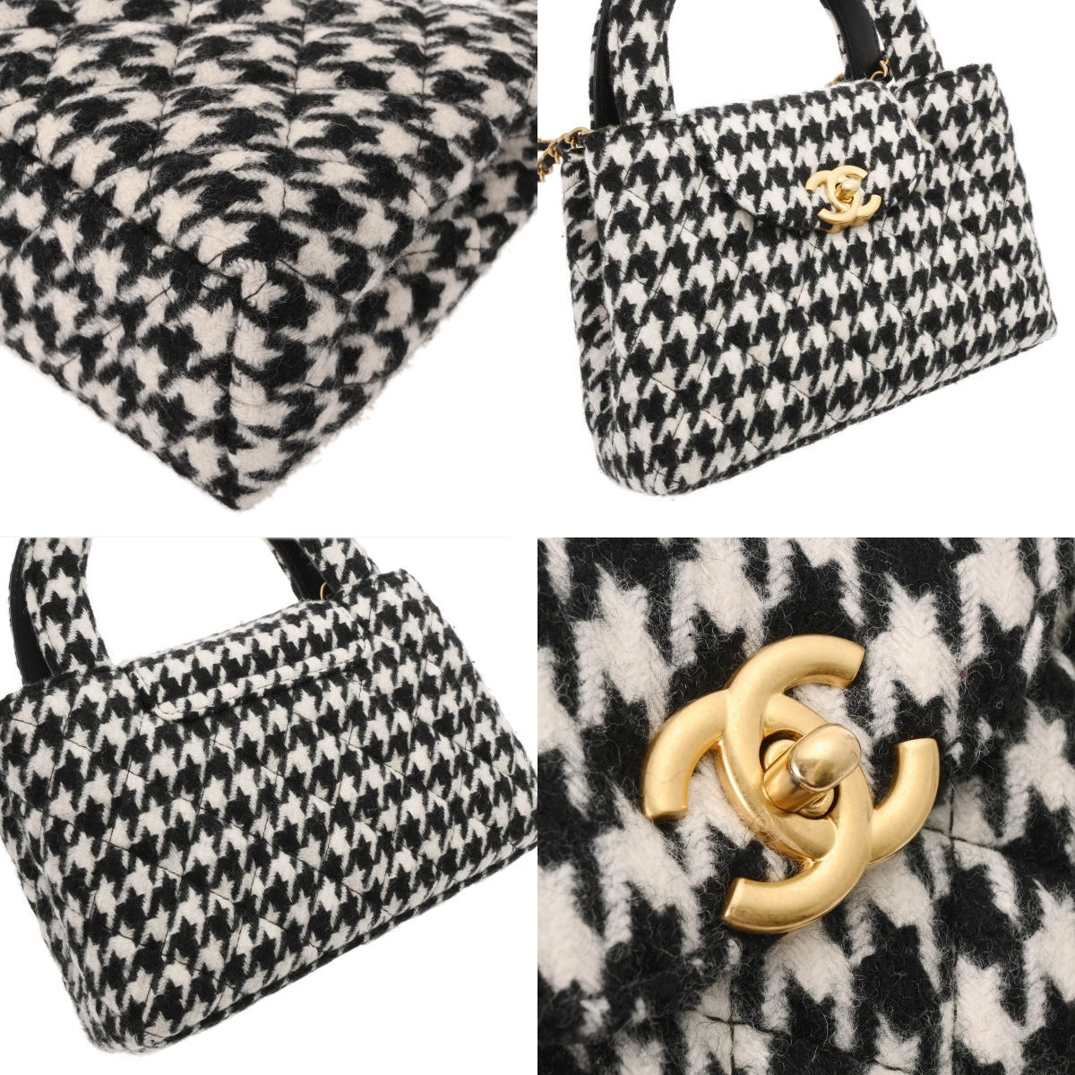 シャネル マトラッセ ミニショッピングバッグ 千鳥柄 ブラック/ホワイト AS4416 ウール レディース バッグ 【bag】