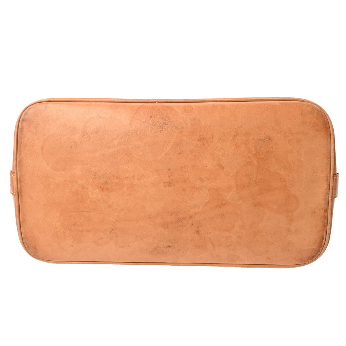 - つぶれ、テカリ、薄汚れ、持ち手ステッチ糸ホツレ、ヌメ革にヤケ、シミなど使用感がございます。