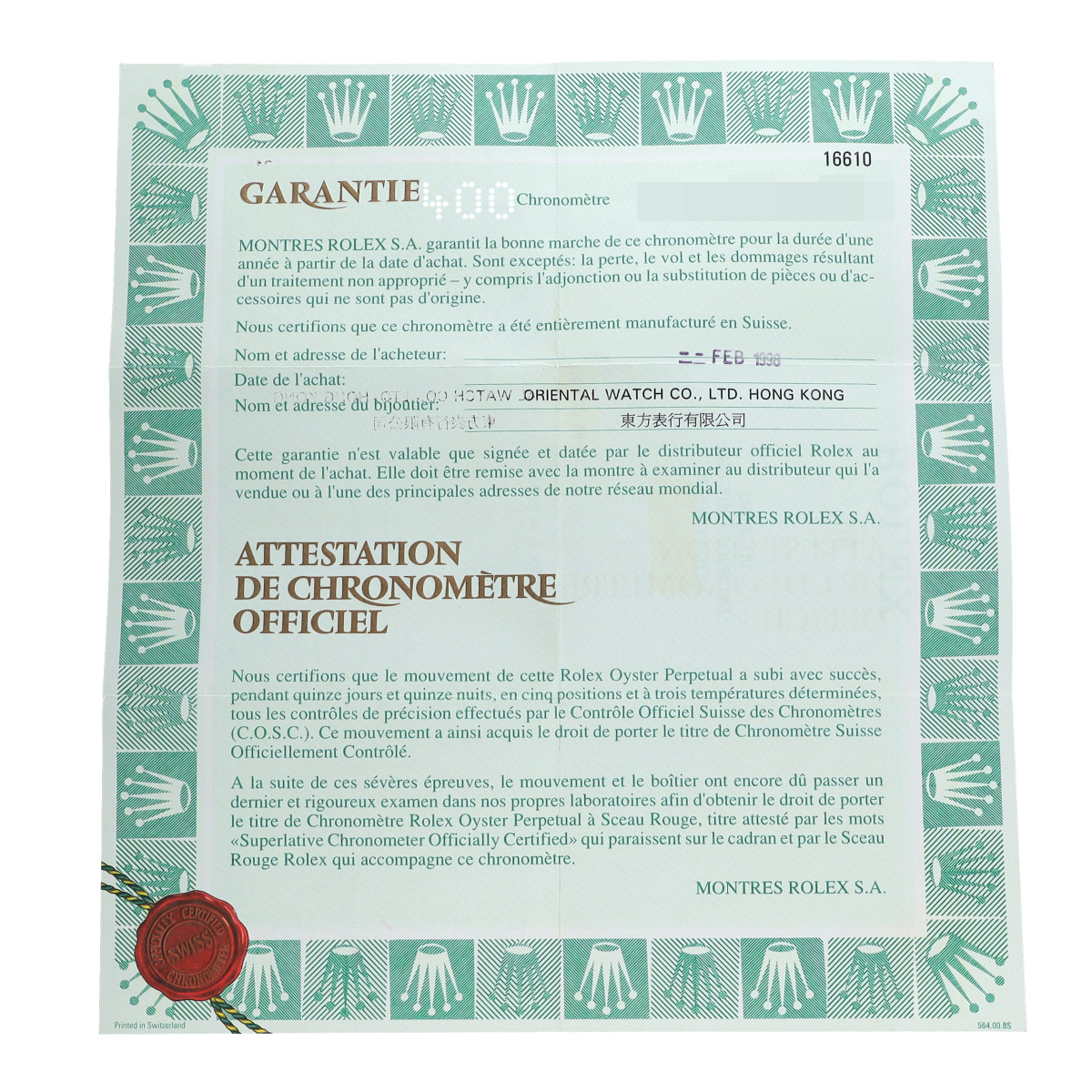 - メーカー保証書( 1998年2月海外購入)
