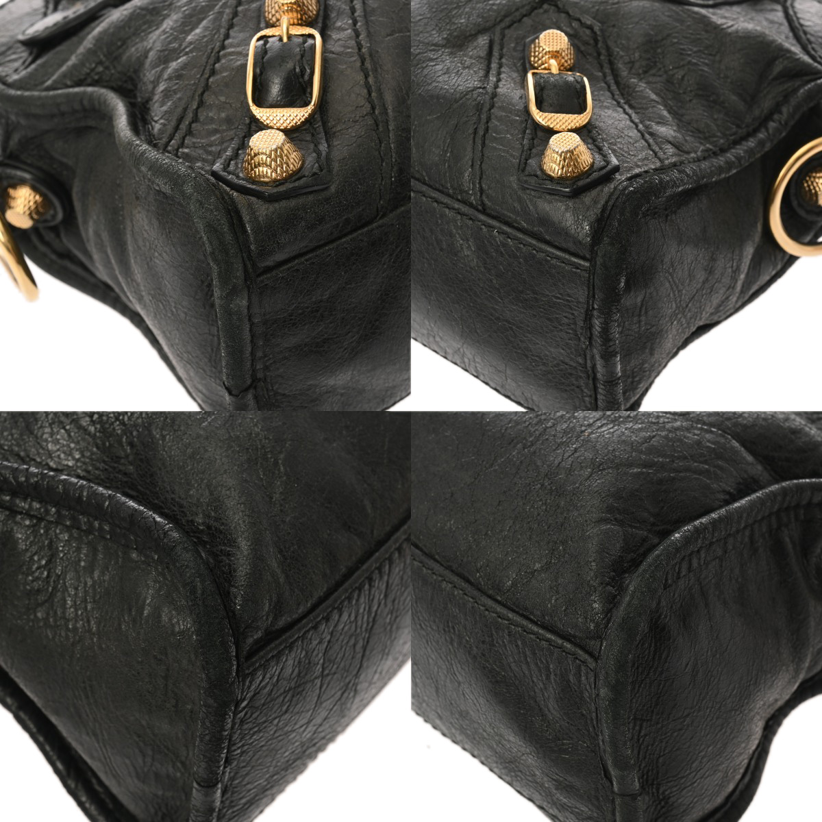 薄汚れやスレ、シワ、収納跡、ヨレ、金具にくすみなど使用感がございます。