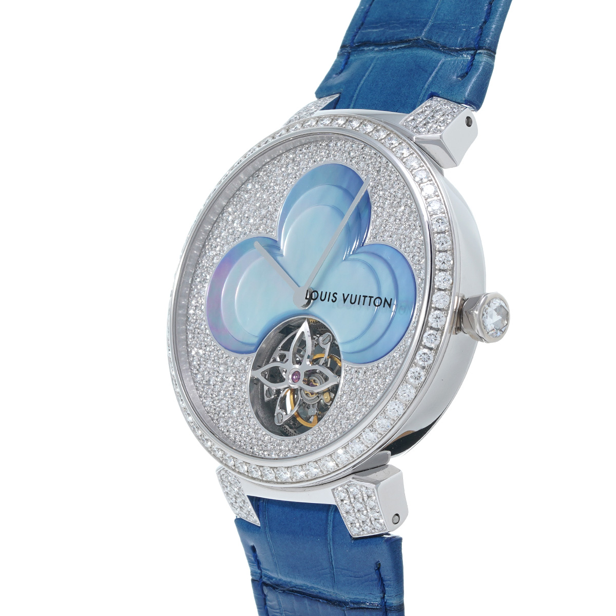 ルイヴィトン タンブールスリム Q1HB00 ダイヤモンド/ブルーシェル メンズ 時計 【wristwatch】