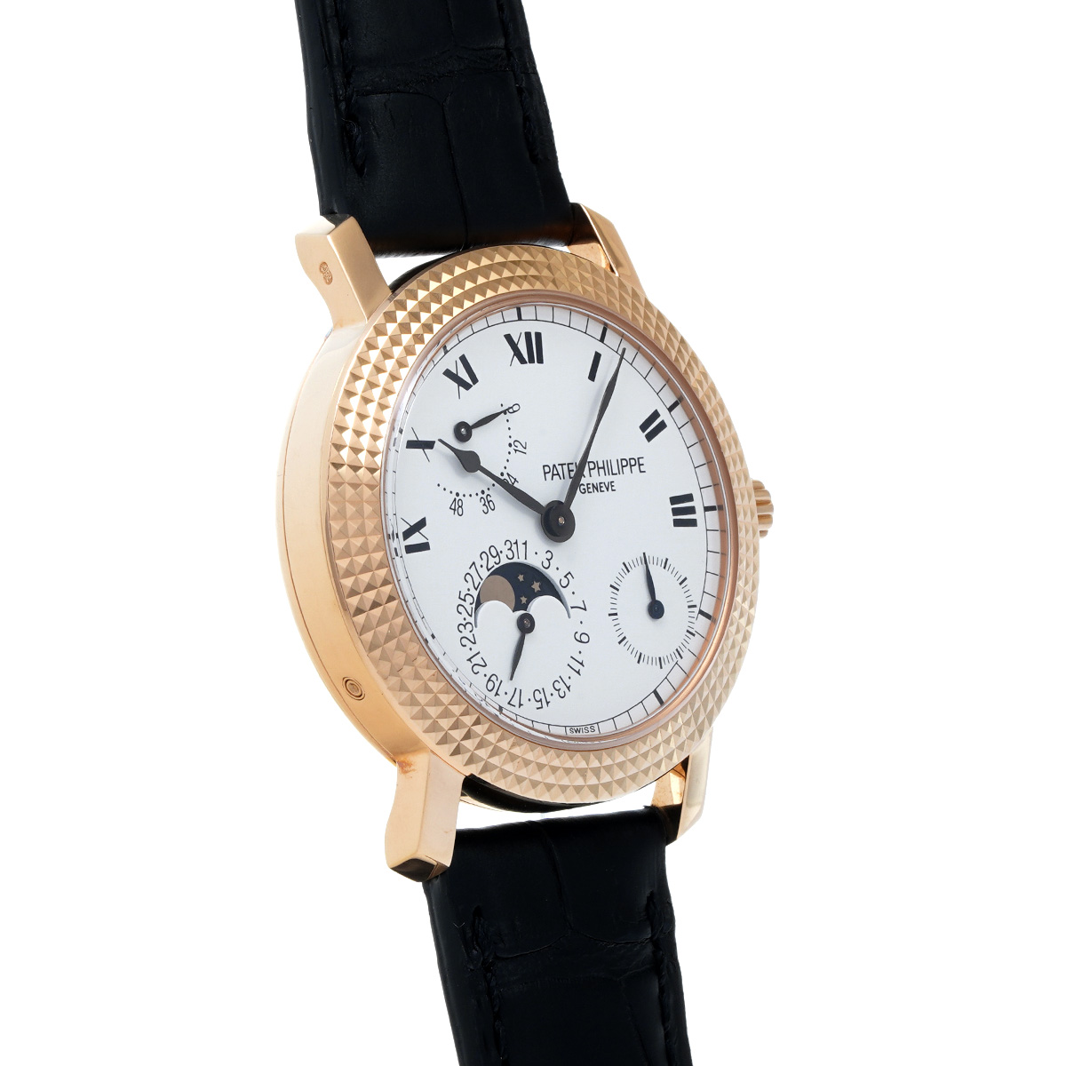 - デイト表示/スモールセコンド/パワーリザーブ表示/ムーンフェイズ/シースルーバック