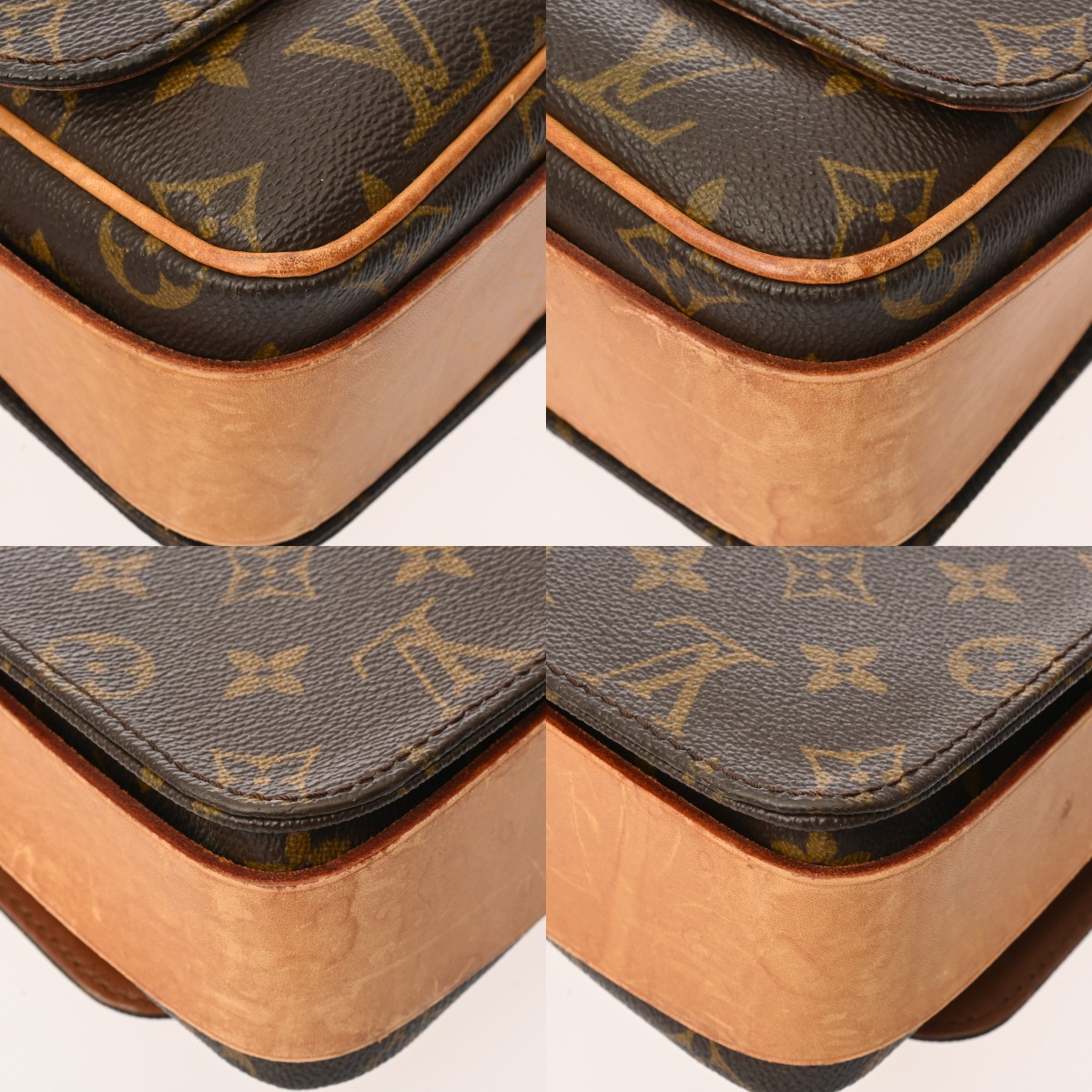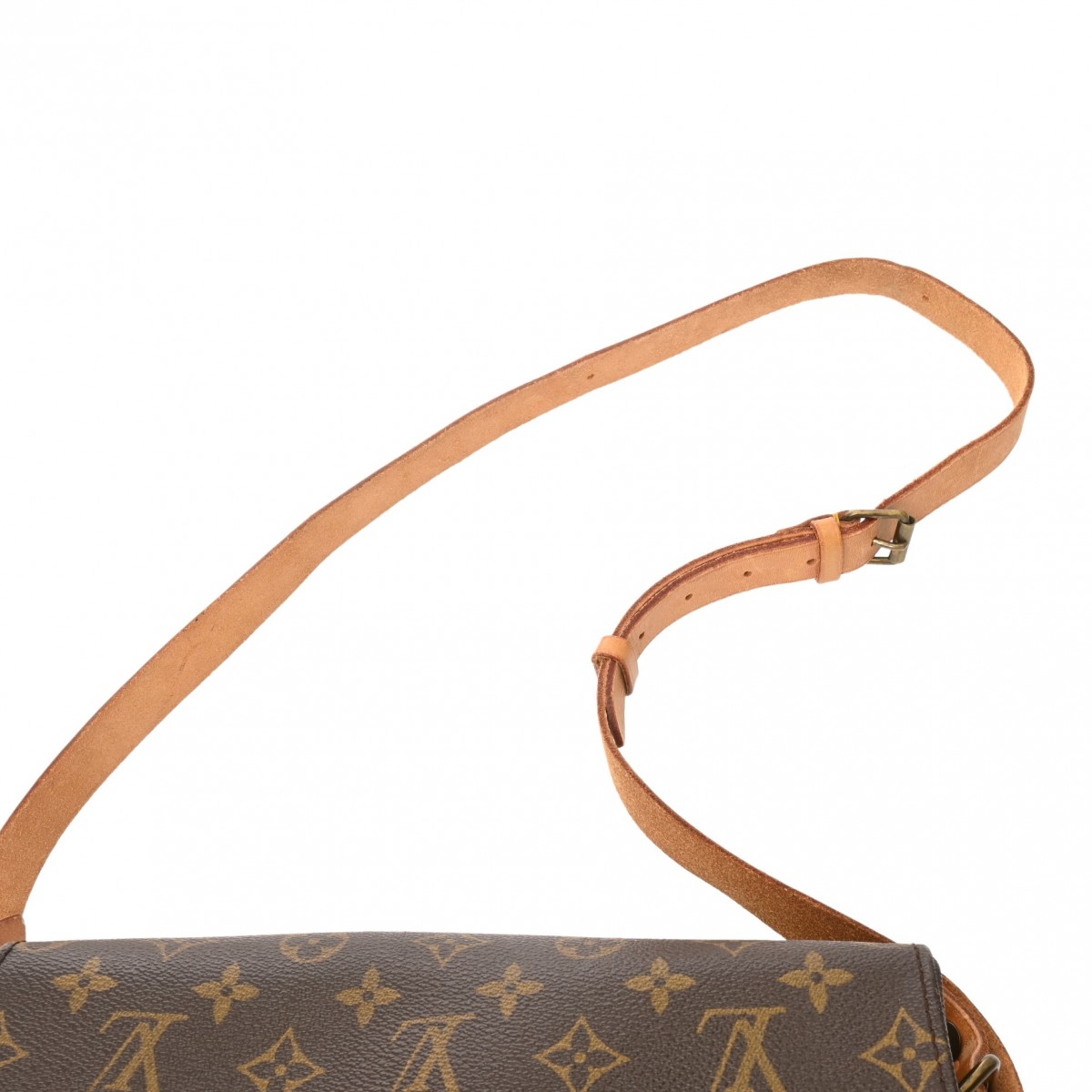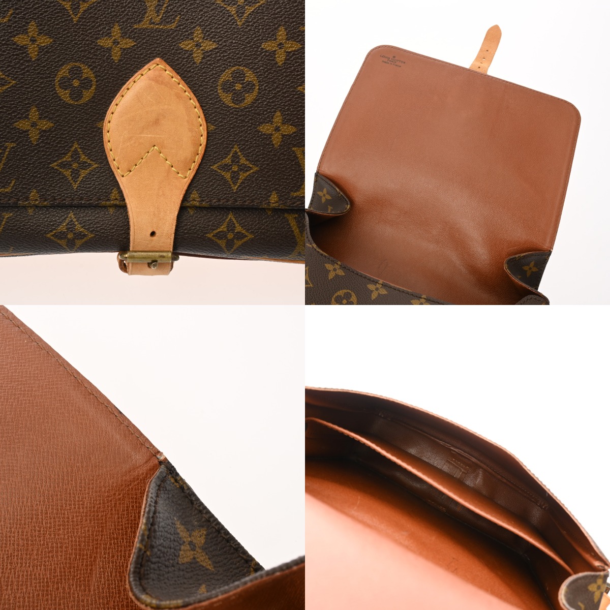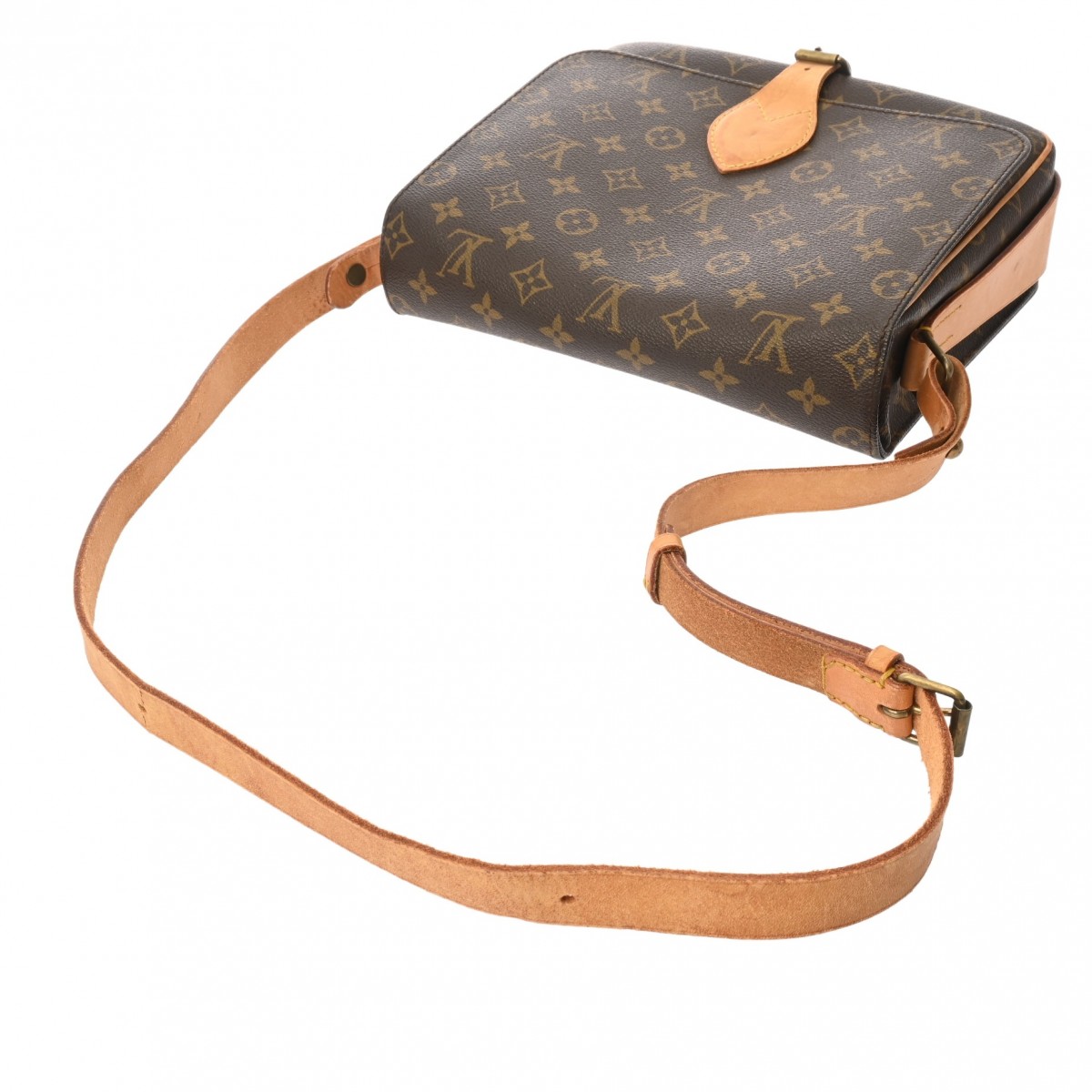 - ヌメ革ヤケ、スレ、シミなどのダメージ、開閉ベルト、ショルダーにクセ、金具に色ハゲ、スリキズなど使用感がございます。