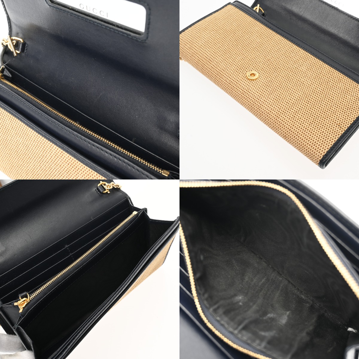 - 少し薄汚れやスレ、若干押し跡、ミラー部分に少しスレ、小銭入れに少し汚れ、ファスナープルにクセなど少し使用感がございます。