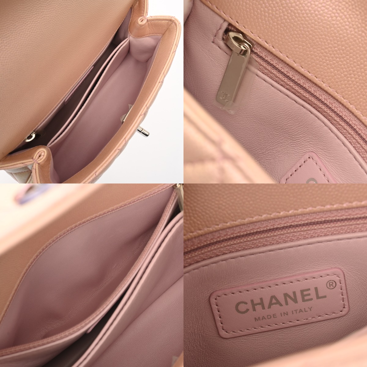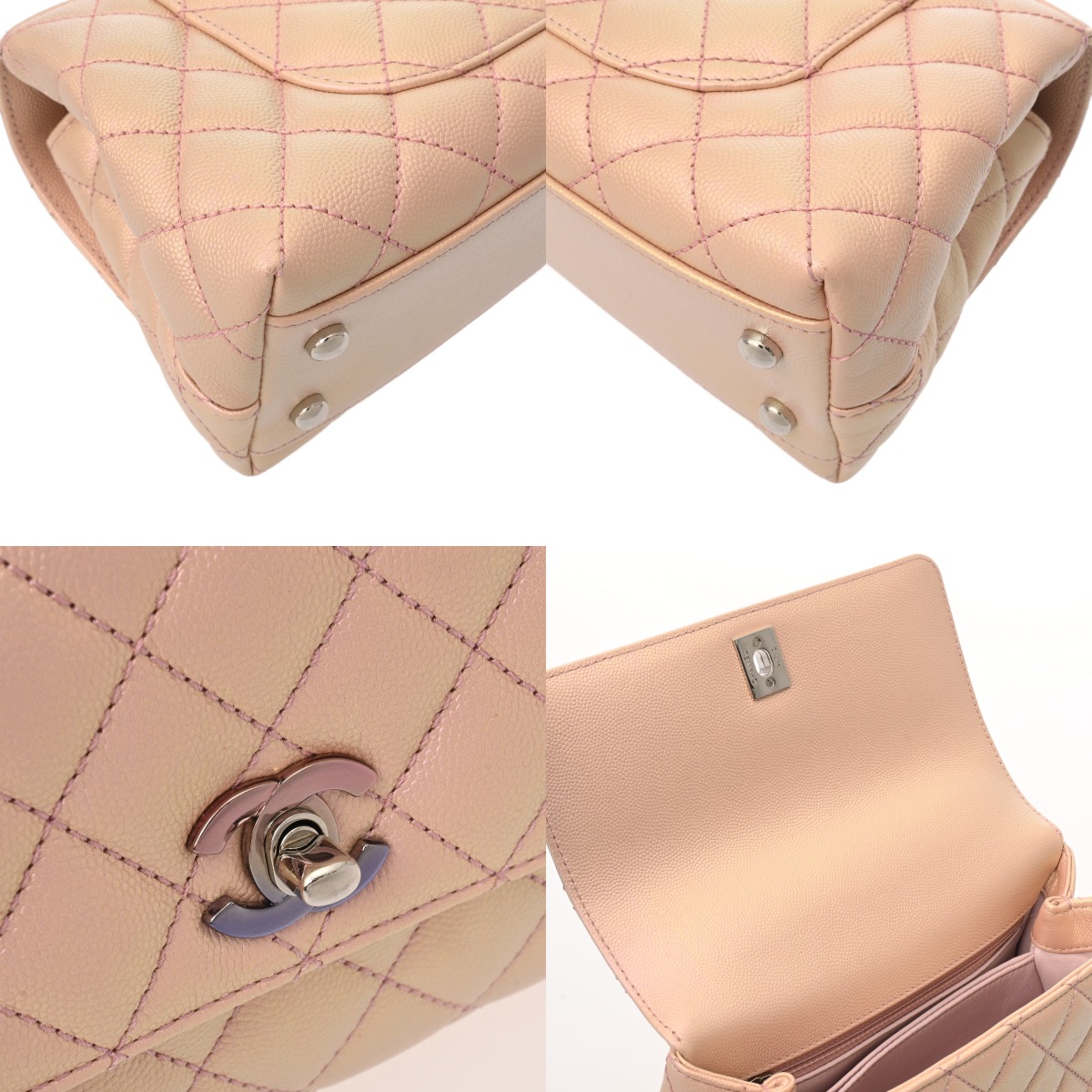 シャネル マトラッセ トップハンドル フラップバッグ XS メタリックピンク A92990 キャビアスキン レディース バッグ 【bag】