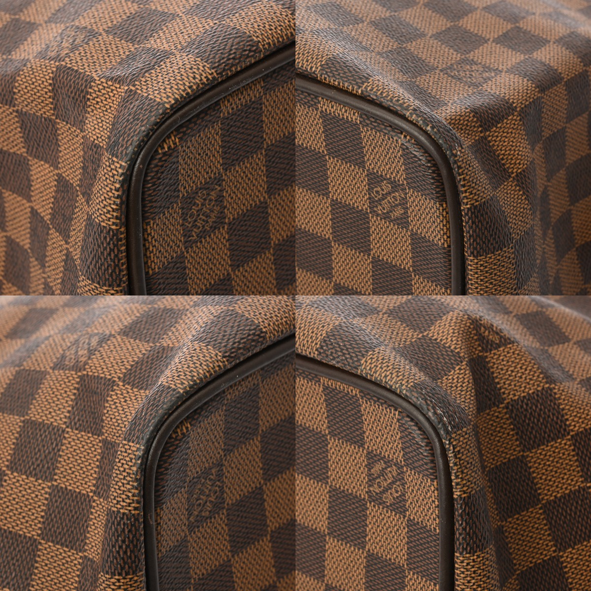 - たたみクセ、少しテカリや薄汚れ、少しスレ、持ち手にスレなど若干使用感、金具部分に色ハゲなど少し使用感がございます。