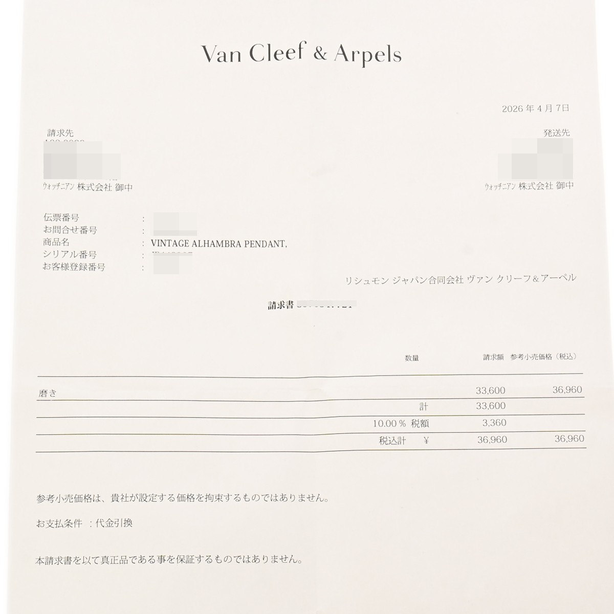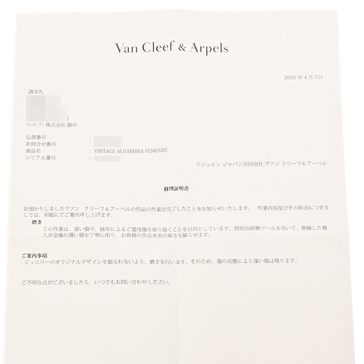 - メーカー保証書( 2015年12月国内購入) / メーカー箱(ダメージ)/ギャランティ/修理明細書/請求書