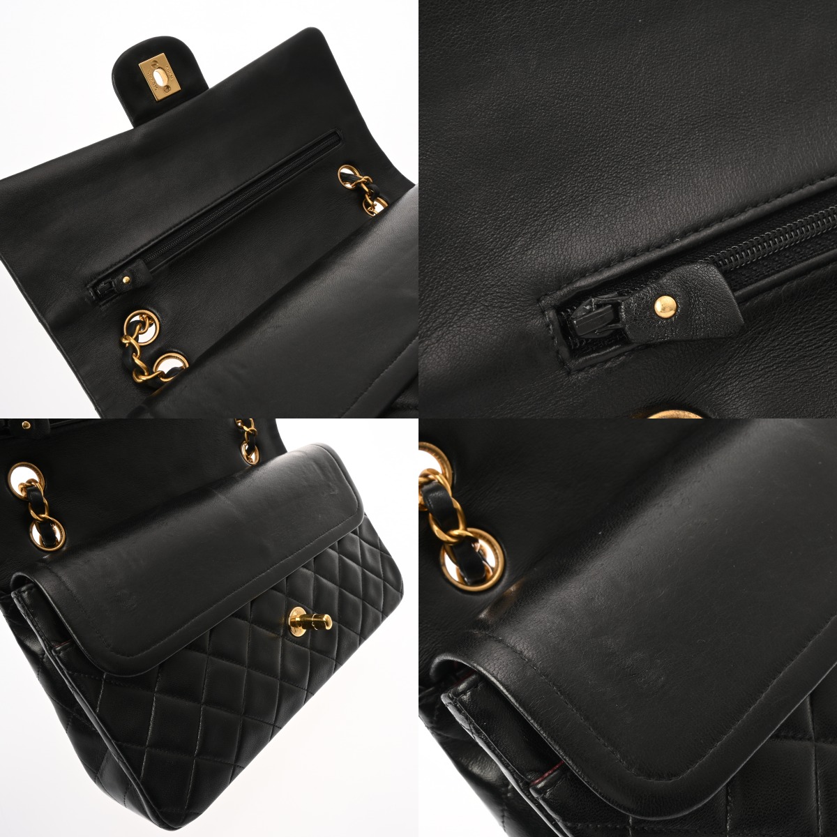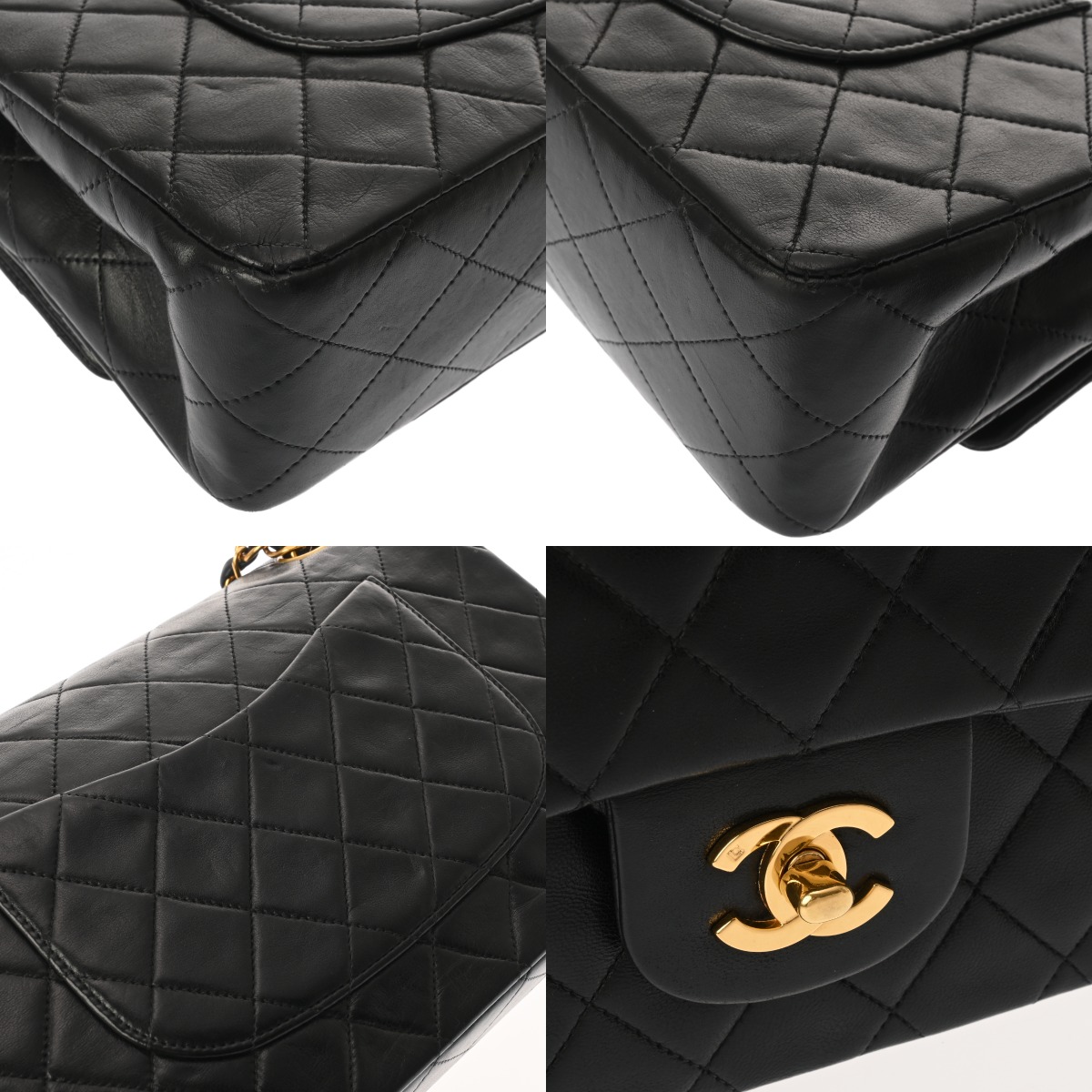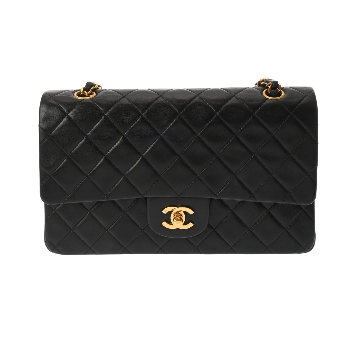 シャネル チェーンショルダー 25cm Wフラップ ブラック A01112 ラムスキン レディース バッグ 【bag】