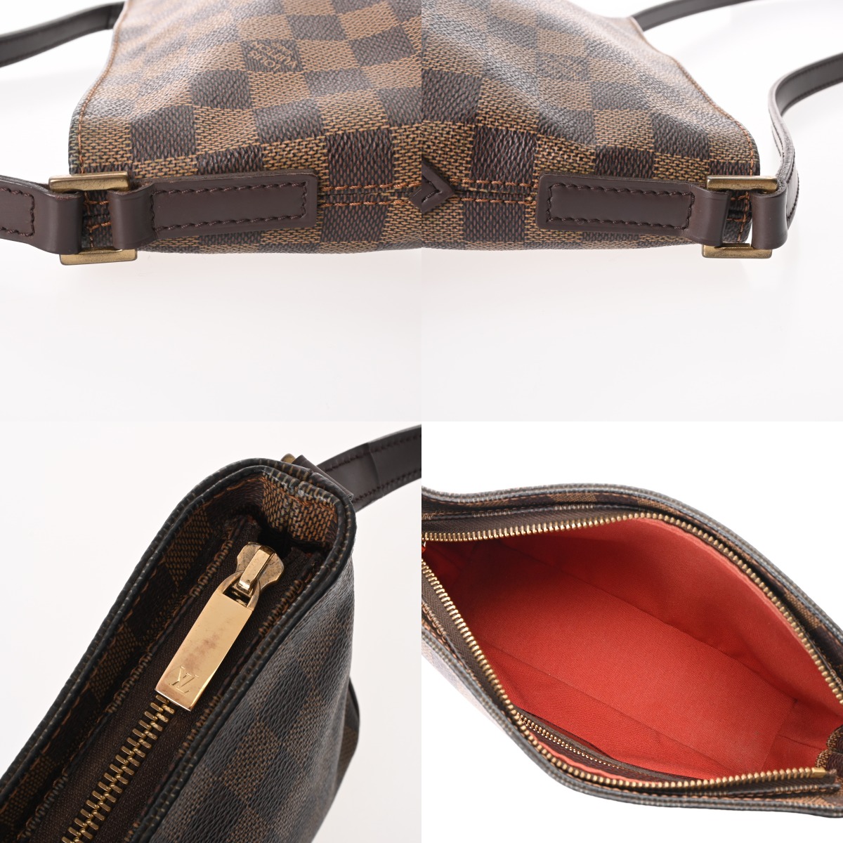 - 少しつぶれ、テカリ、ショルダーに若干クセやシワ、角スレ、金具にスレキズなど少々使用感がございます。