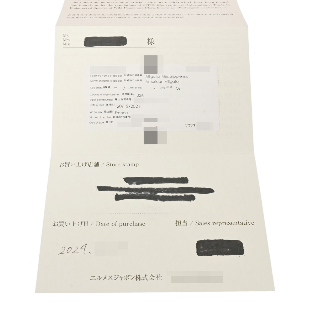 - メーカー保証書( 2024年2月購入) / メーカー箱 / CITES