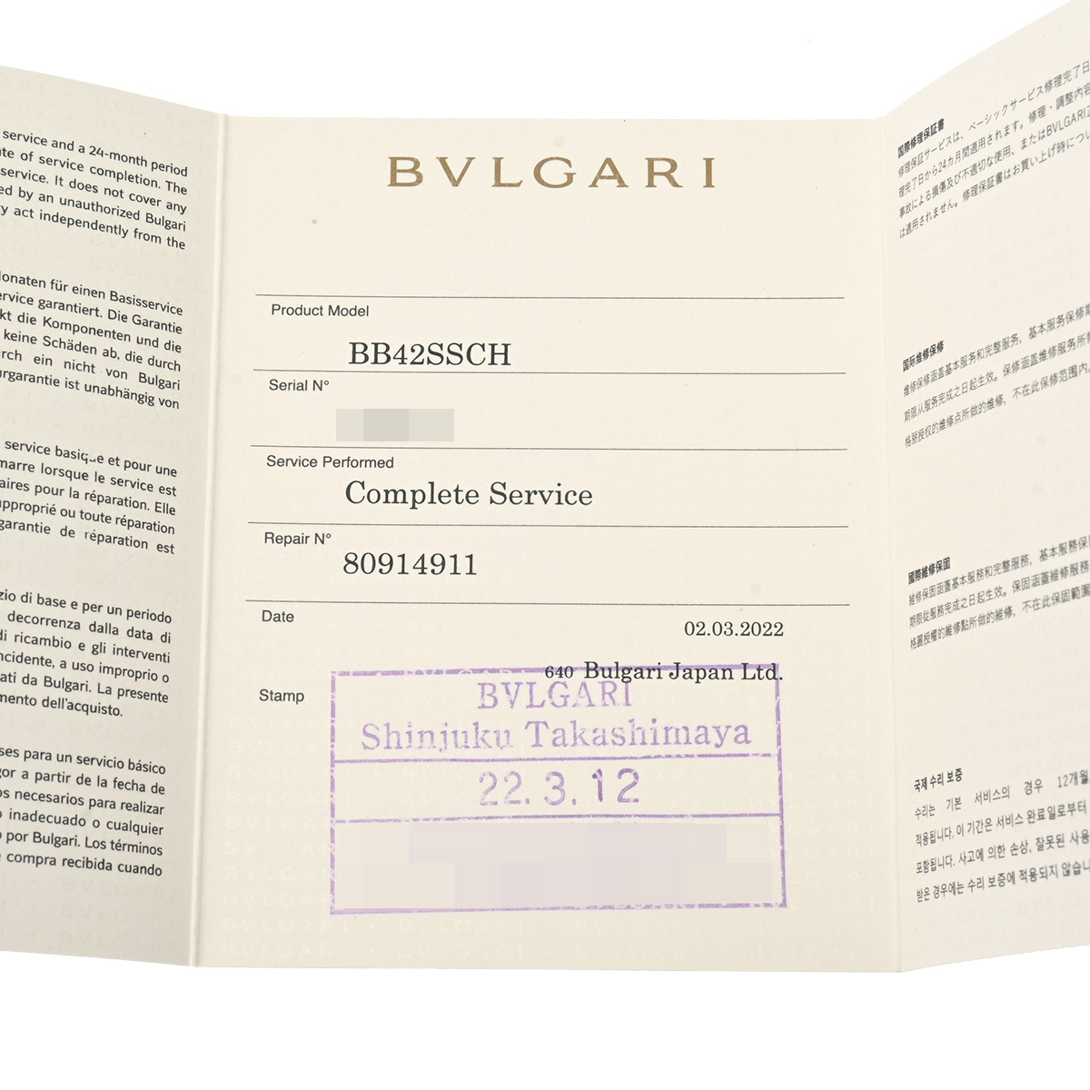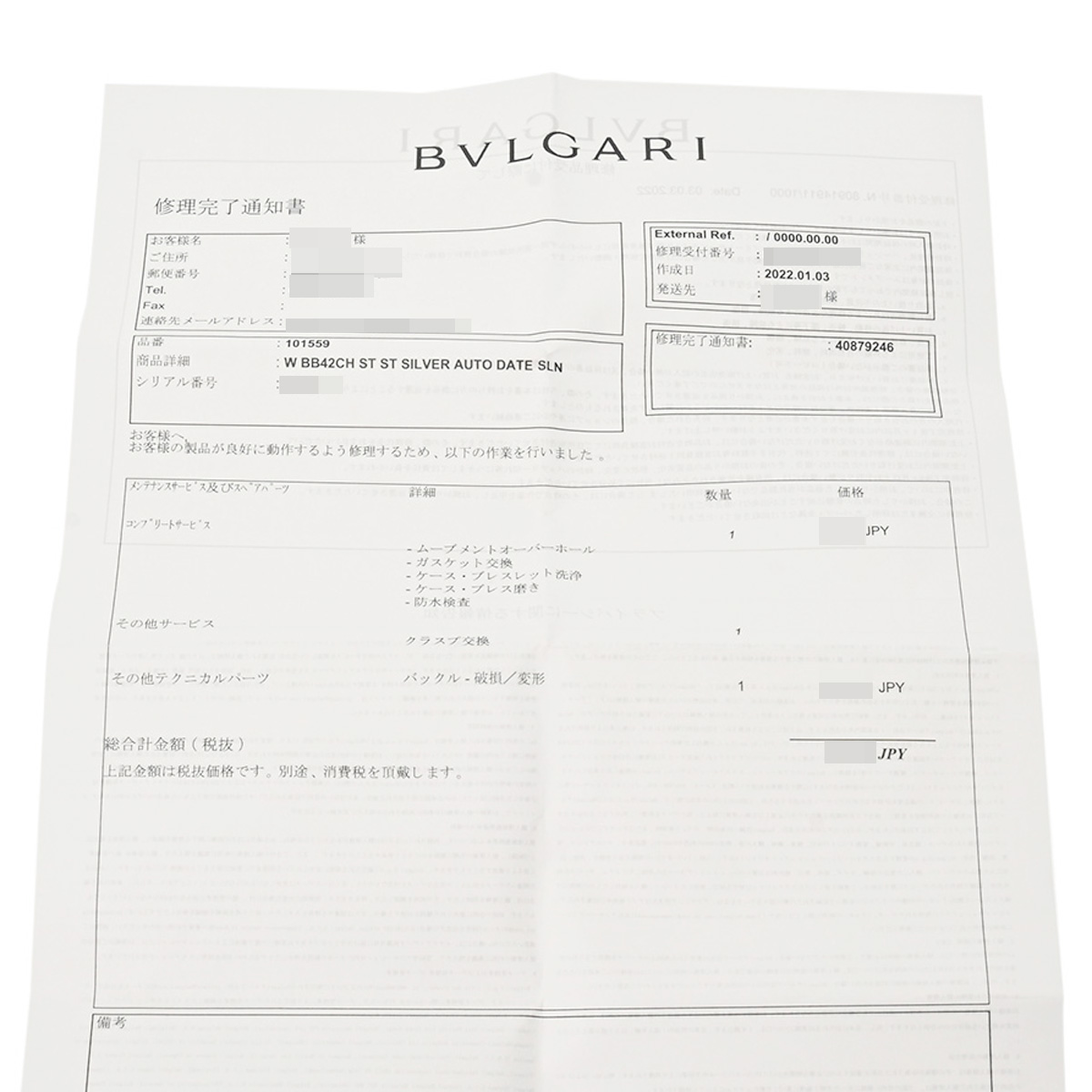 修理完了通知書(2022年3月コンプリートサービス)