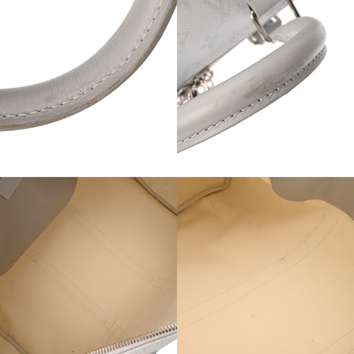 - つぶれ、薄汚れ、スレ、持ち手コバハゲ、ヒビワレ、ショルダーにクセ、金具にスレなど使用感がございます。