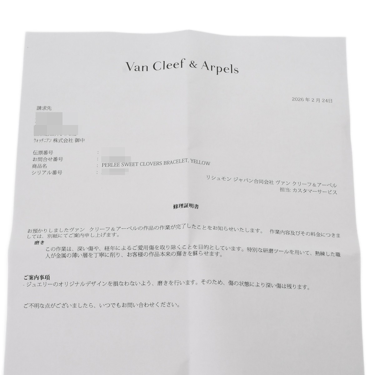 - メーカー保証書( 2023年6年海外購入) / メーカー箱 / 請求書/修理証明書(2026年2月磨き)