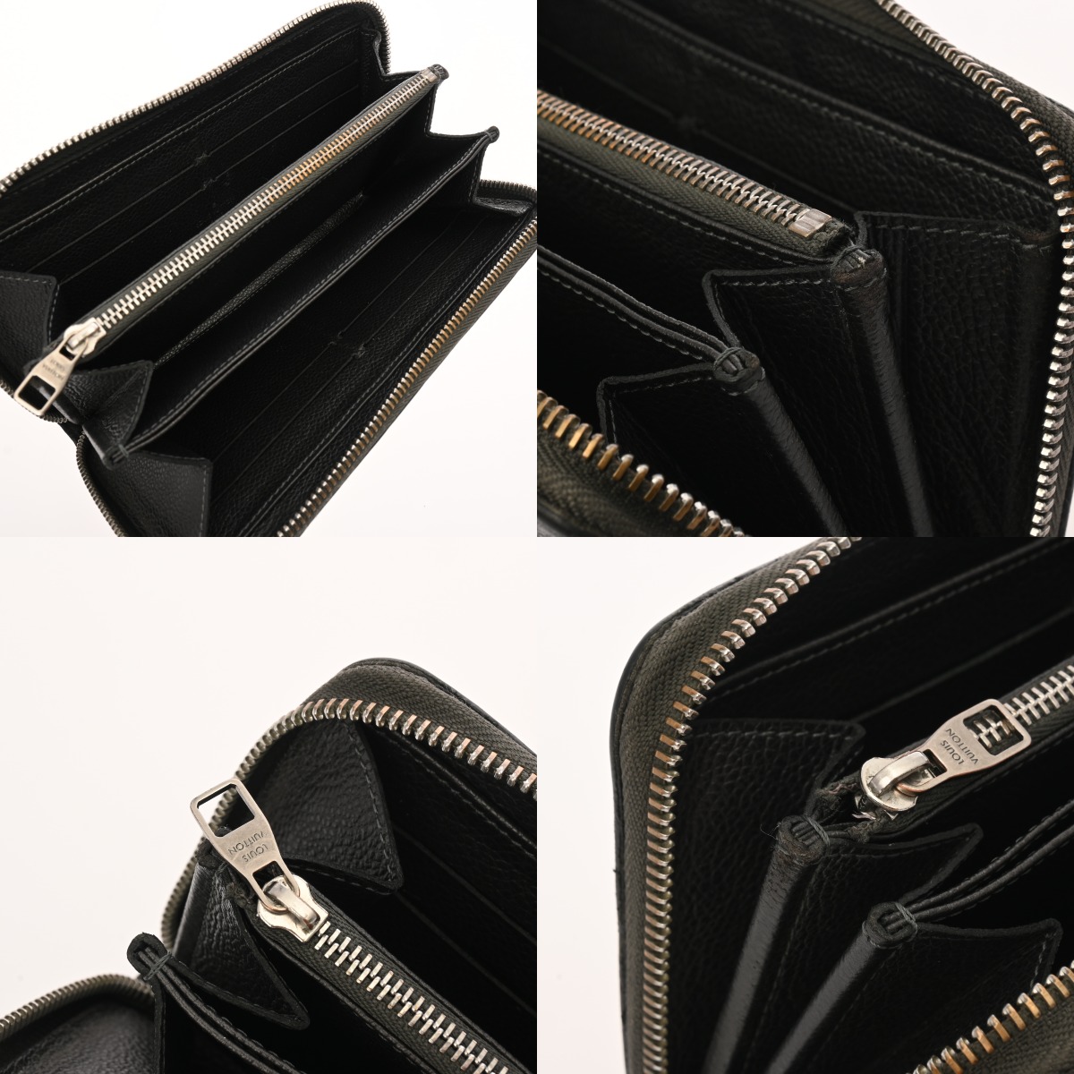- 薄汚れ、スレ、ヨレ、カード収納跡、小銭入れに黒ずみなど使用感、金具に変色、スリキズなど使用感がございます。