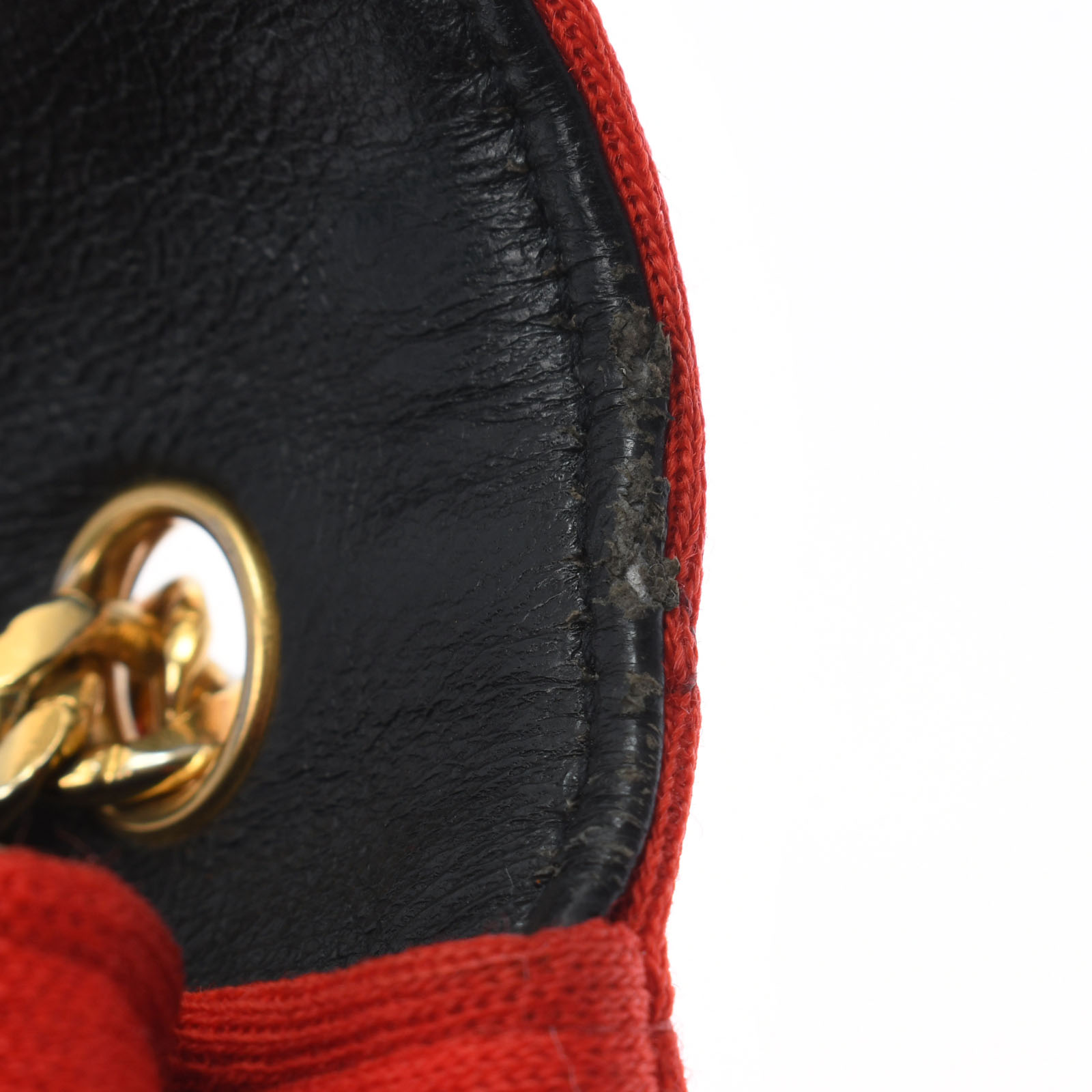 外側 つぶれ、コットンに少しスレ、ショルダー含め金具にスレやメッキ剥がれが若干ございます。 内側 若干スレやキズ、底に押し跡、フラップ部分のコバにスリキズがございます。