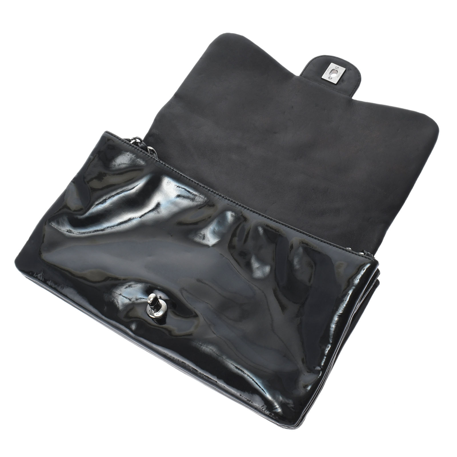 チェーンショルダー 黒/シルバー金具 パテント CHANEL シャネル レディース 【中古】