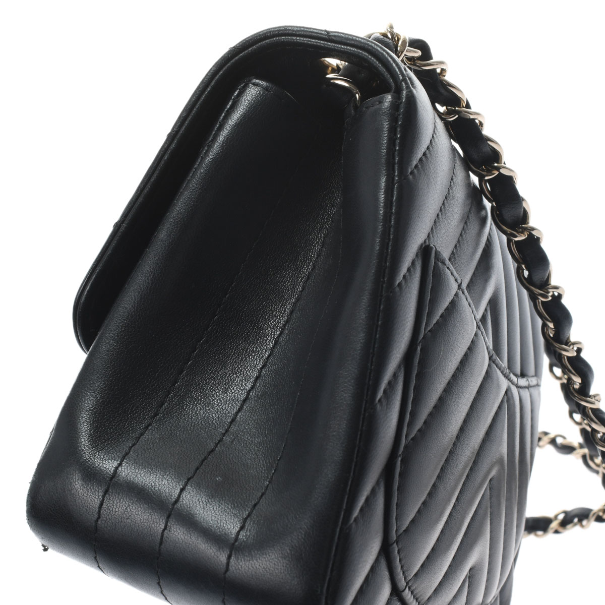 - マトラッセ ミニフラップバッグ 17 シェブロン ブラック ラムスキン