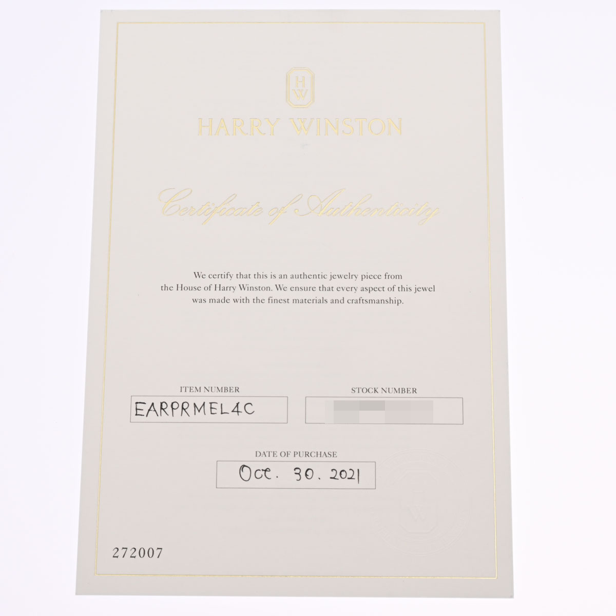 現在、ハリー・ウィンストンでは保証書の有無に関わらず、「正規ブティックより新品を購入したお客様」以外はメーカーでの修理やメンテナンスを受けることができません。
