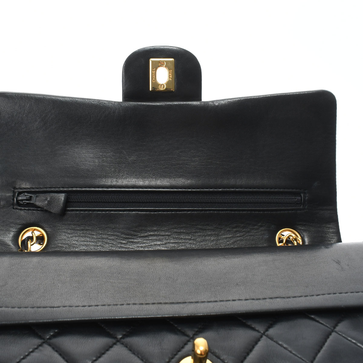 マトラッセ Wフラップ Wチェーンショルダー 25 ブラック A01112 ラムスキン CHANEL シャネル レディース 【中古】