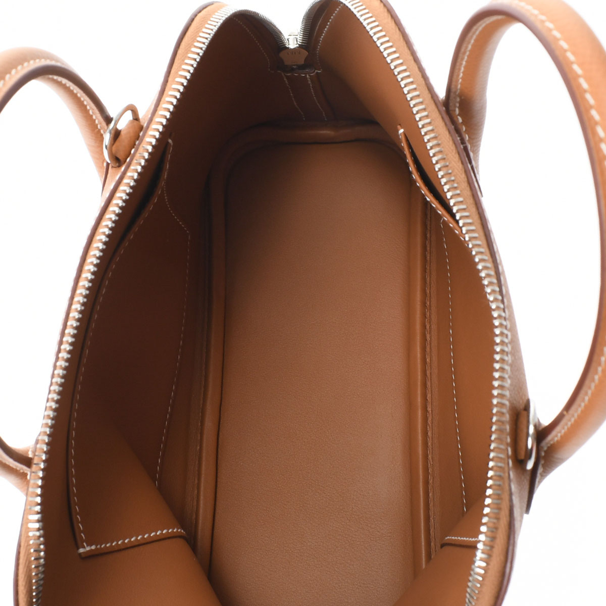 外側 持ち手のコバや底面の角付近に僅かなスレがございますが、他は特に目立つダメージのない未使用品です。店頭販売を行っておりますので展示未使用品とお考えください。 内側 -