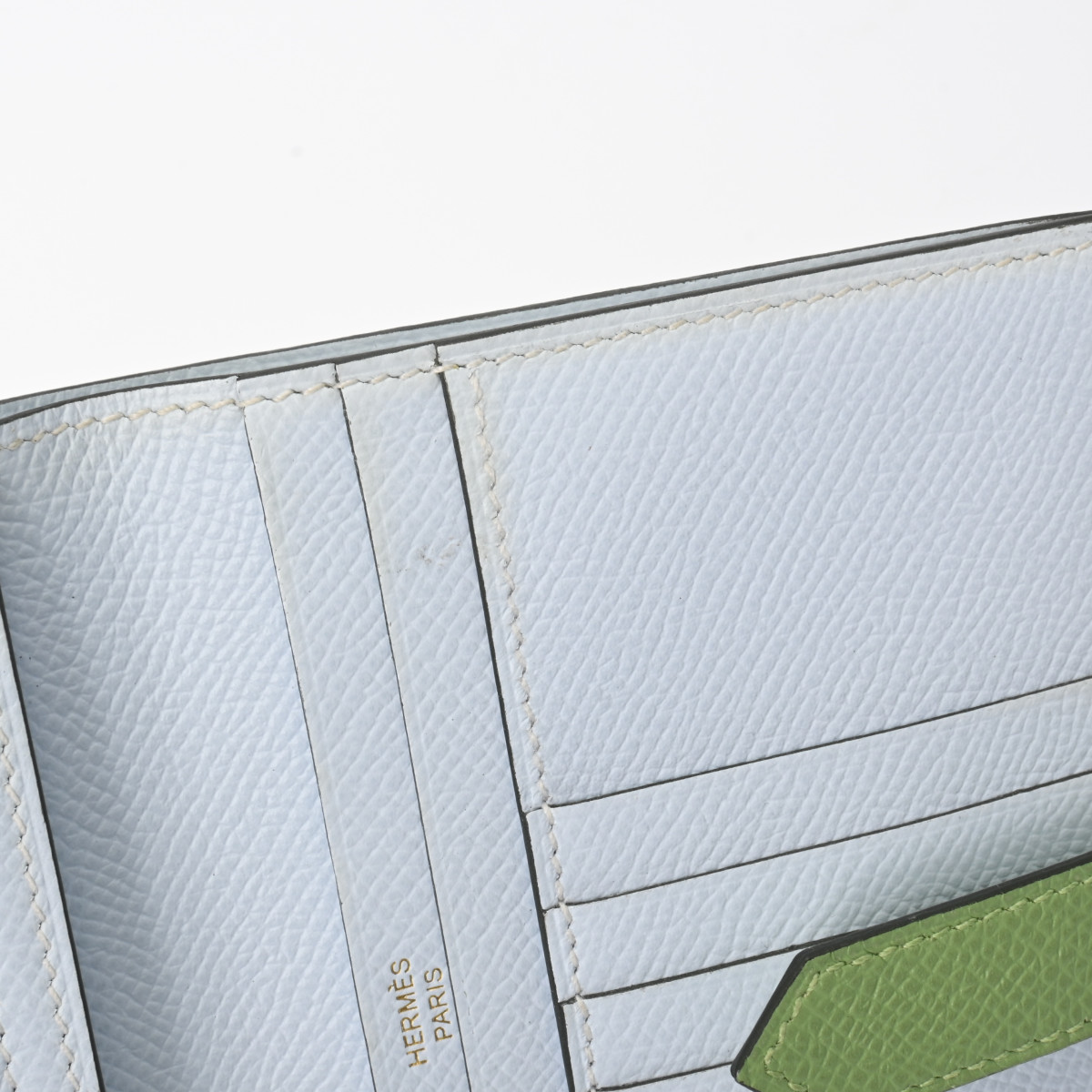 エルメス ベアン コンパクト ヴェールクリケット/ブルーブリュム/ゴールド金具 ヴォーエプソン ユニセックス 財布 【中古】【purse】