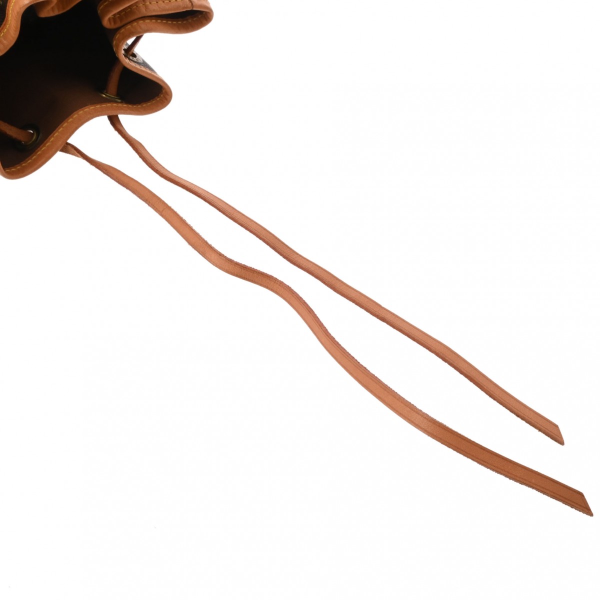 外側 潰れ、テカリ、汚れやスレ、ヌメ革にヤケやシミ、紐にクセ、金具に変色など使用感がございます。 内側 汚れやスレ、シミやシワ、金具に変色がございます。