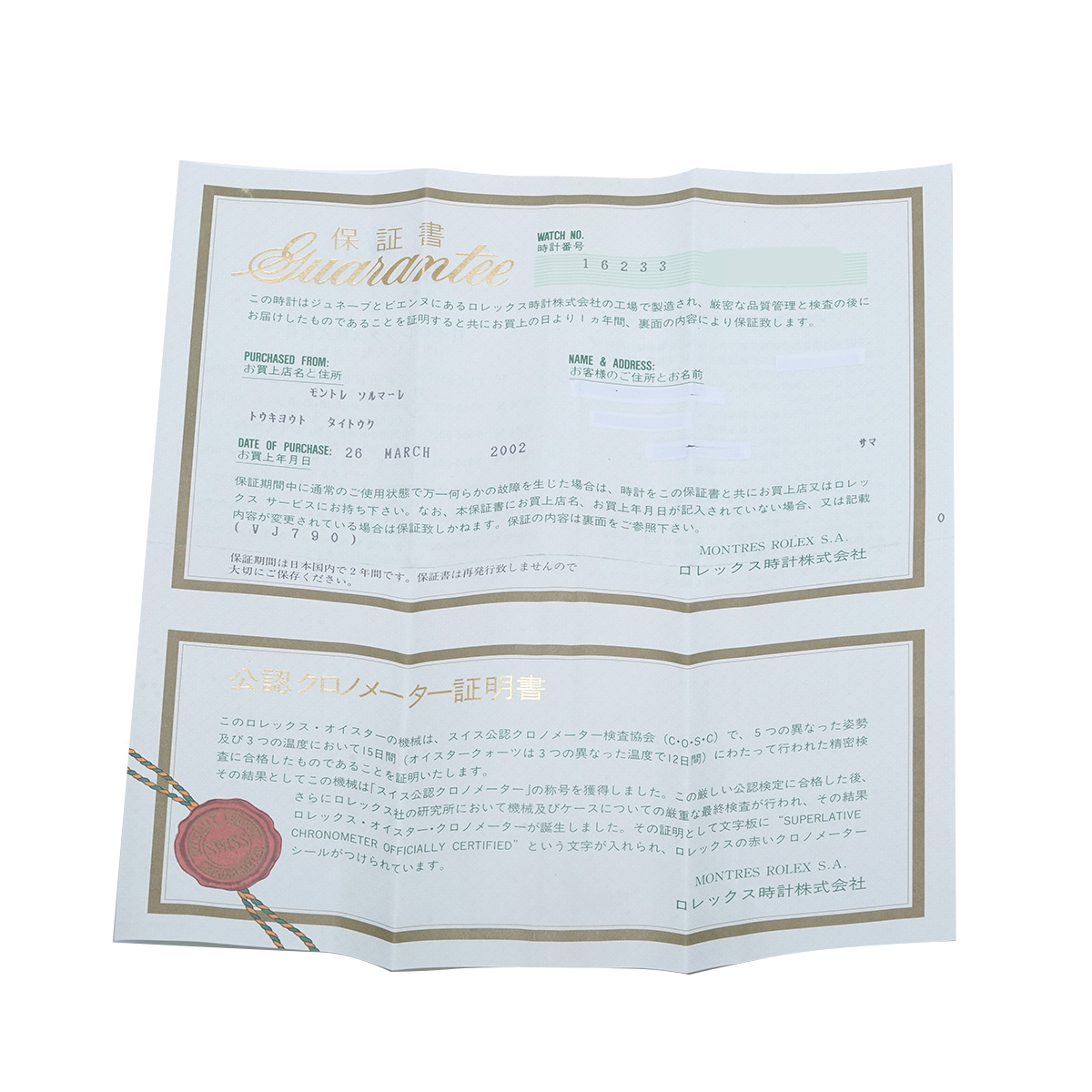 - メーカー保証書( 2002年3月国内購入) / タグ