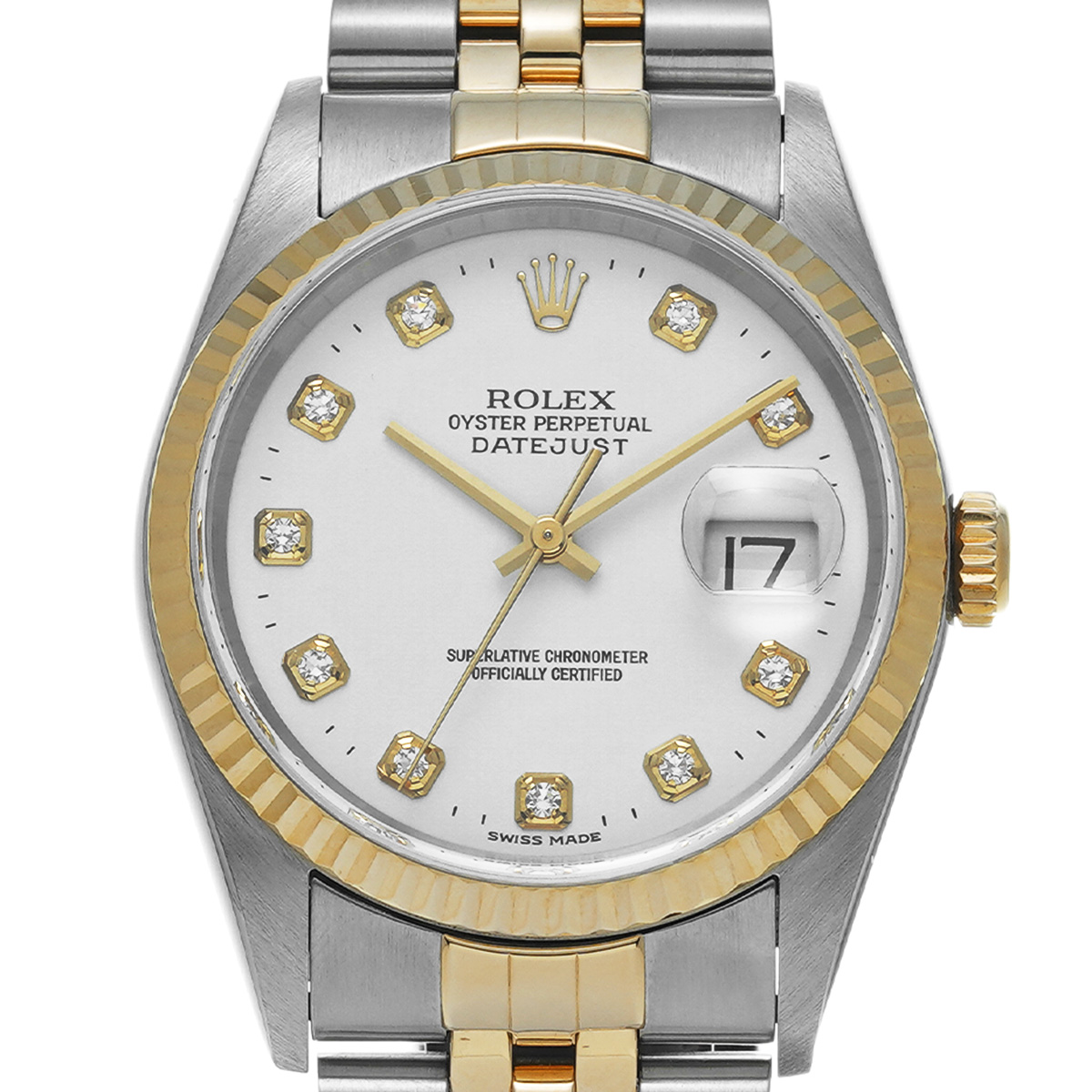 ロレックス デイトジャスト 16233G ホワイト/ダイヤモンド メンズ 時計 【中古】【wristwatch】