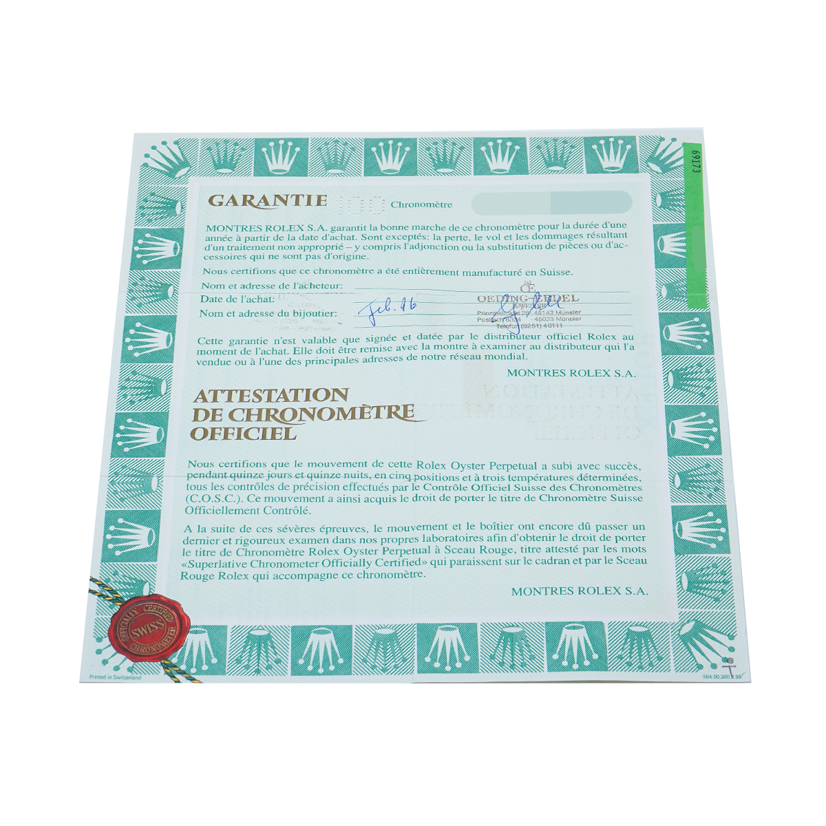 - メーカー保証書( 1996年7月海外購入) / 内箱(劣化)